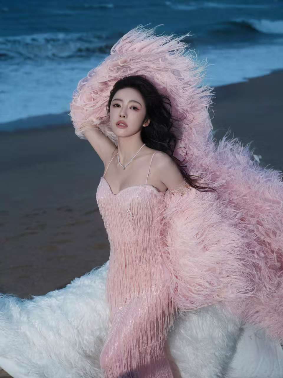 蔡文静两套造型亮相ELLE盛典,紫色羽毛流苏裙搭配珍珠项链化身摇曳生姿的复古名伶,斜肩薄纱短裙置身暗夜沙滩,化身性感妩媚的精灵女王。清新与性感随意切换,百变女王是这样的😎 女明星ELLE出图