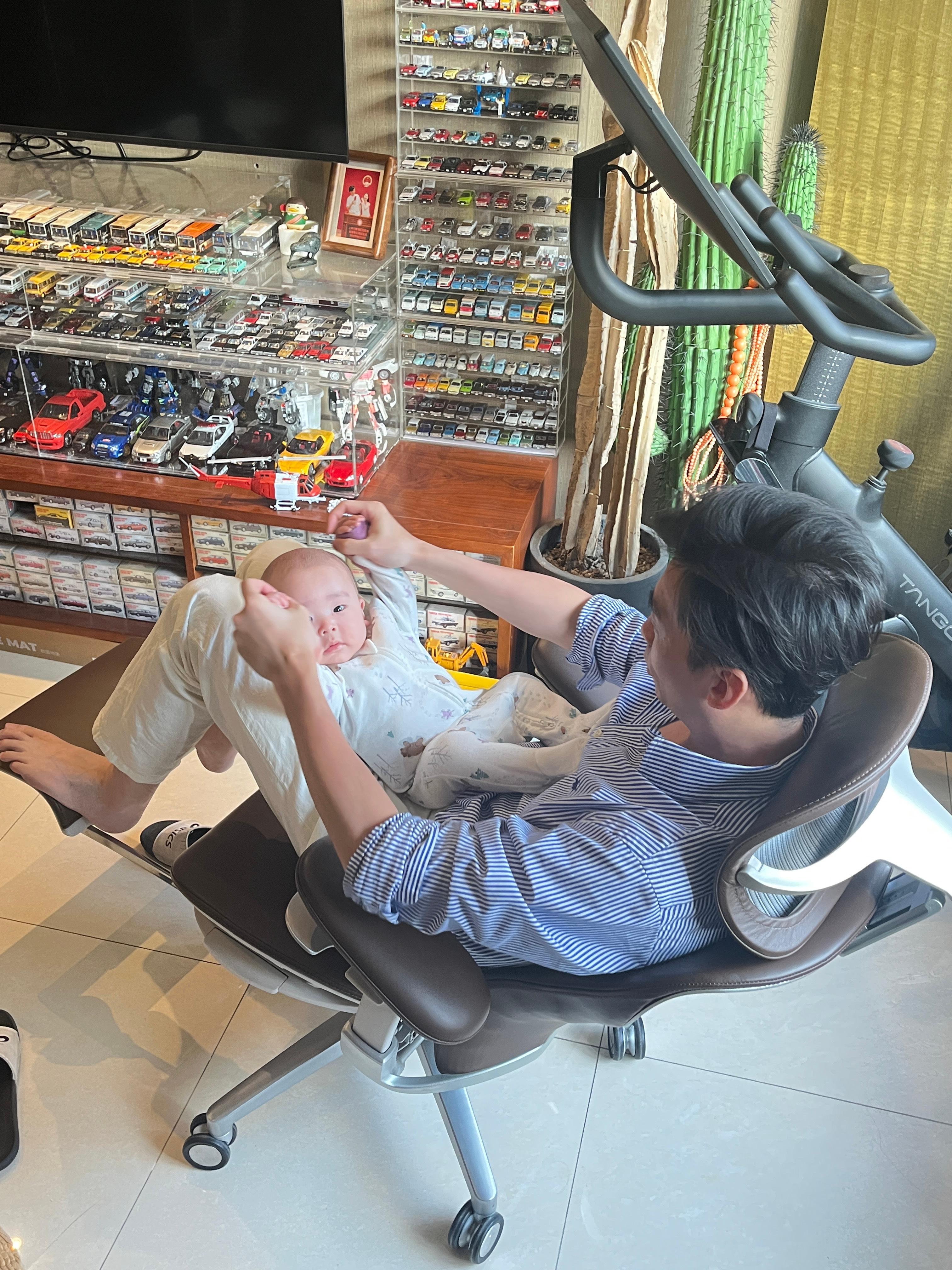 那张可以提供航天级别背部支撑,又能让我坐到哪里躺到哪里的阿基米德工程椅(),实在太舒服了!于是我又在客厅搞了一把更奢华的皮质版。没想到不仅适合我看片打盹儿,居然还是个奶娃神器。陈兜兜这小子倒识货,现在只要我一躺椅子上,他就能躺我腿上,不哭不闹玩一下午,这几天父子感情迅速升温啊。。。掐指一算,这个冬歇期能一直在家和他玩到明年澳网。平时宝座让给兜哥多坐坐,坐高兴了就开口叫声爹哈[么么哒]