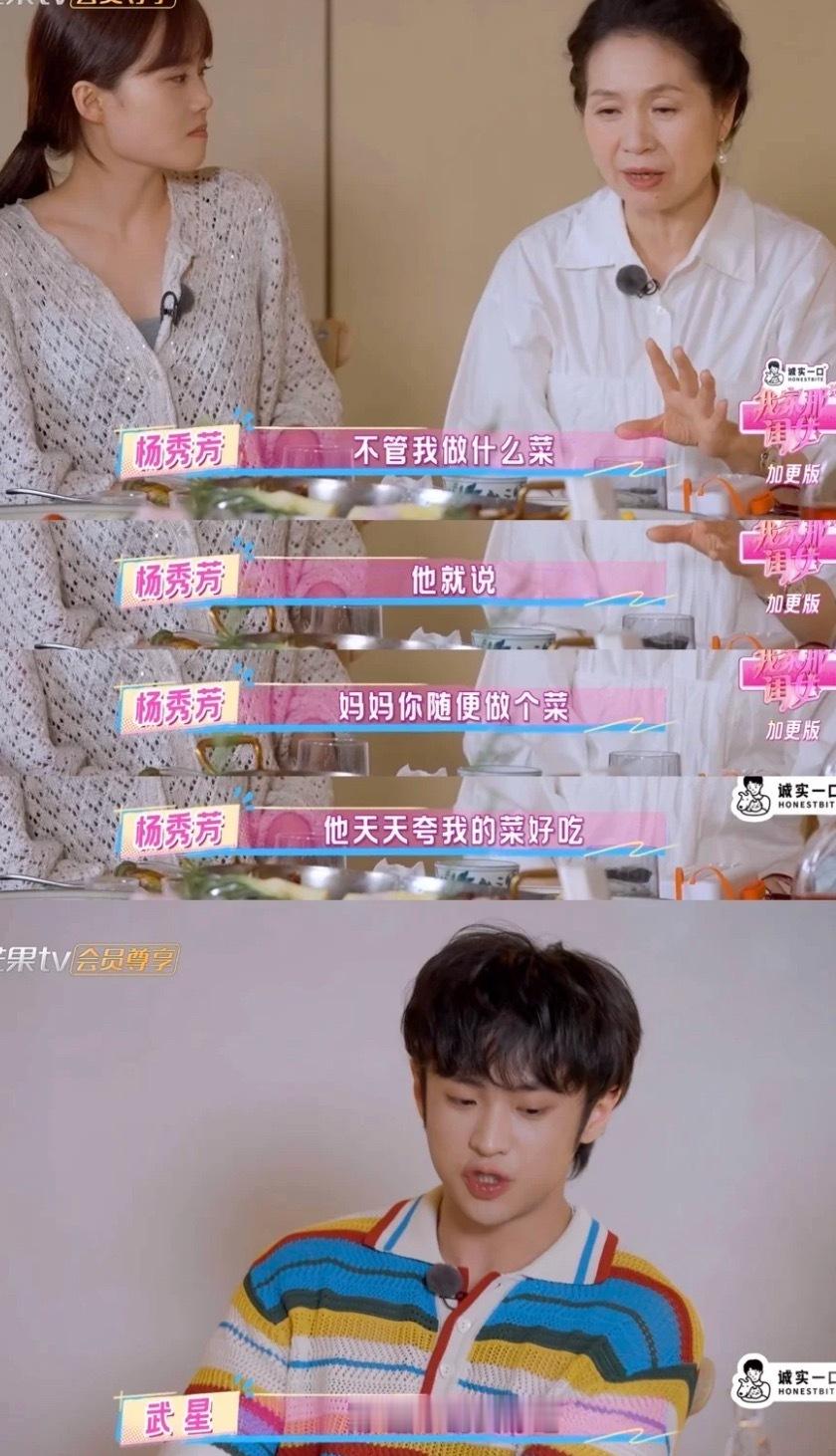 前几天刷到视频说武星“无视妈妈的存在和感受”被网友吐槽时,真的替他捏把汗,还好等来了《我家那闺女》的加更版,人家武星在节目里明明把妈妈夸成宝藏好吗?