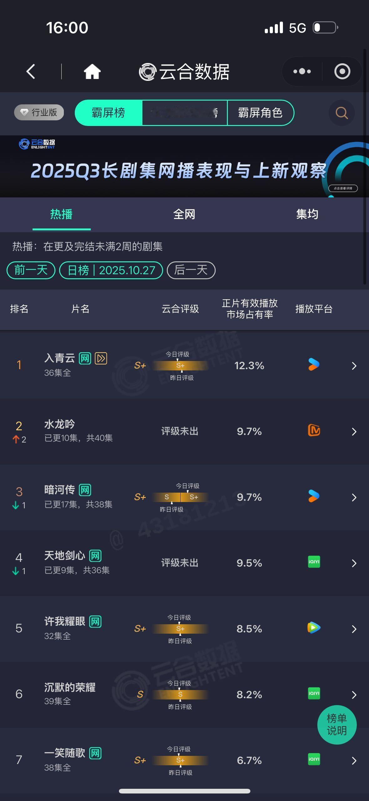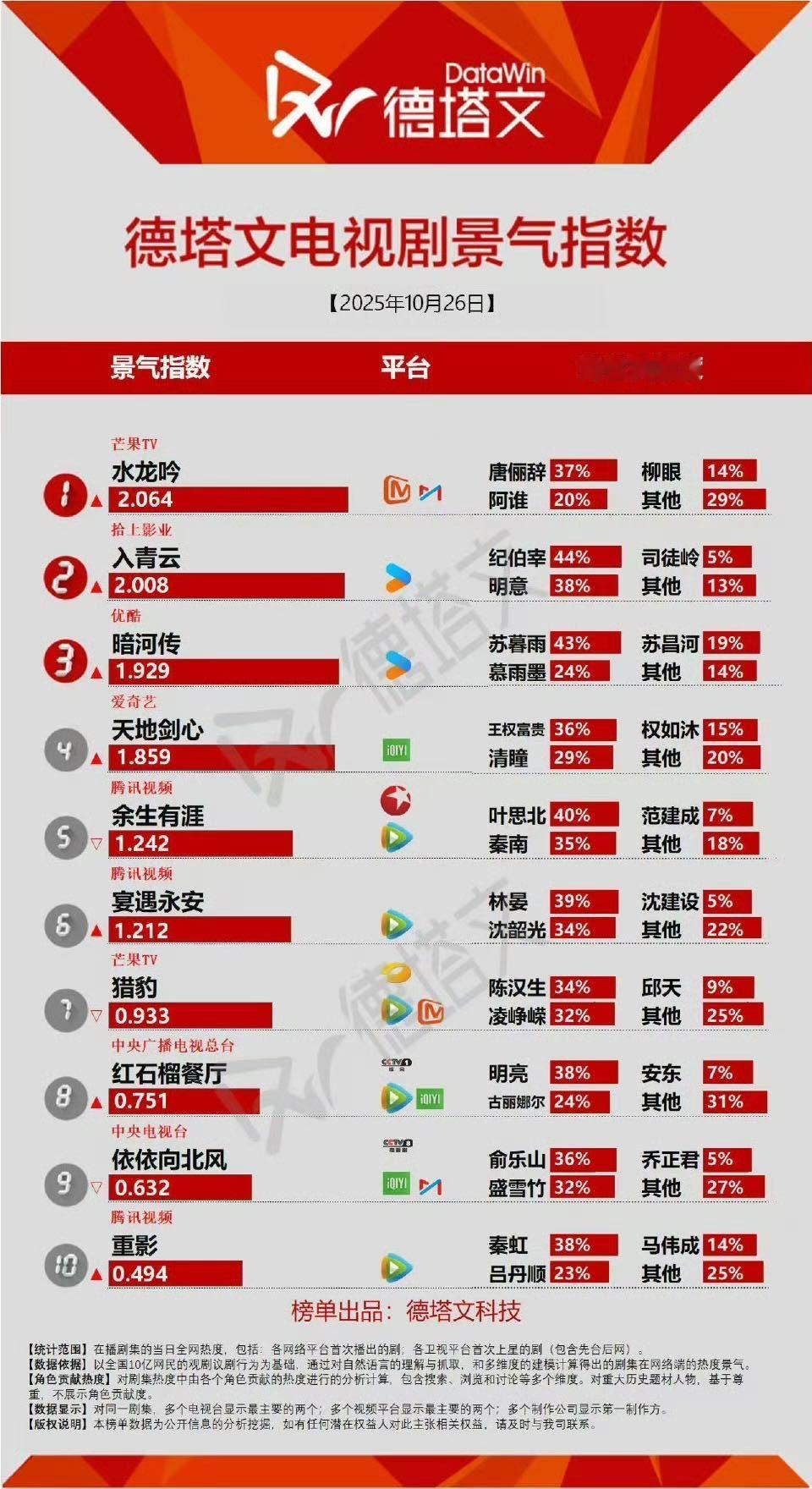 水龙吟云合逆跌 罗云熙扛剧实绩+1!水龙吟云合第2 云合逆跌!正片有效播放市场占有率9·7%。咪咕热度一直上涨,德塔文定档后5次登顶!唐俪辞周睇楼弟子+万窍斋债主+天人境圣子…的多重身份层层揭晓,这角色魅力直接拉动观剧热情,值得一份逆跌成绩单!水龙吟