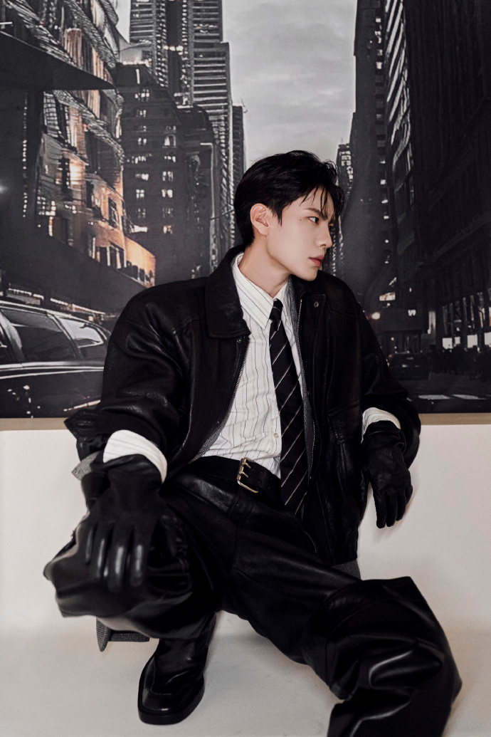 毕雯珺的腿比我人生都长,就这个毕雯珺ELLE造型爽啊,酷感满分黑色系造型搭配湿发,我一整个有被这个建模脸帅到啦~