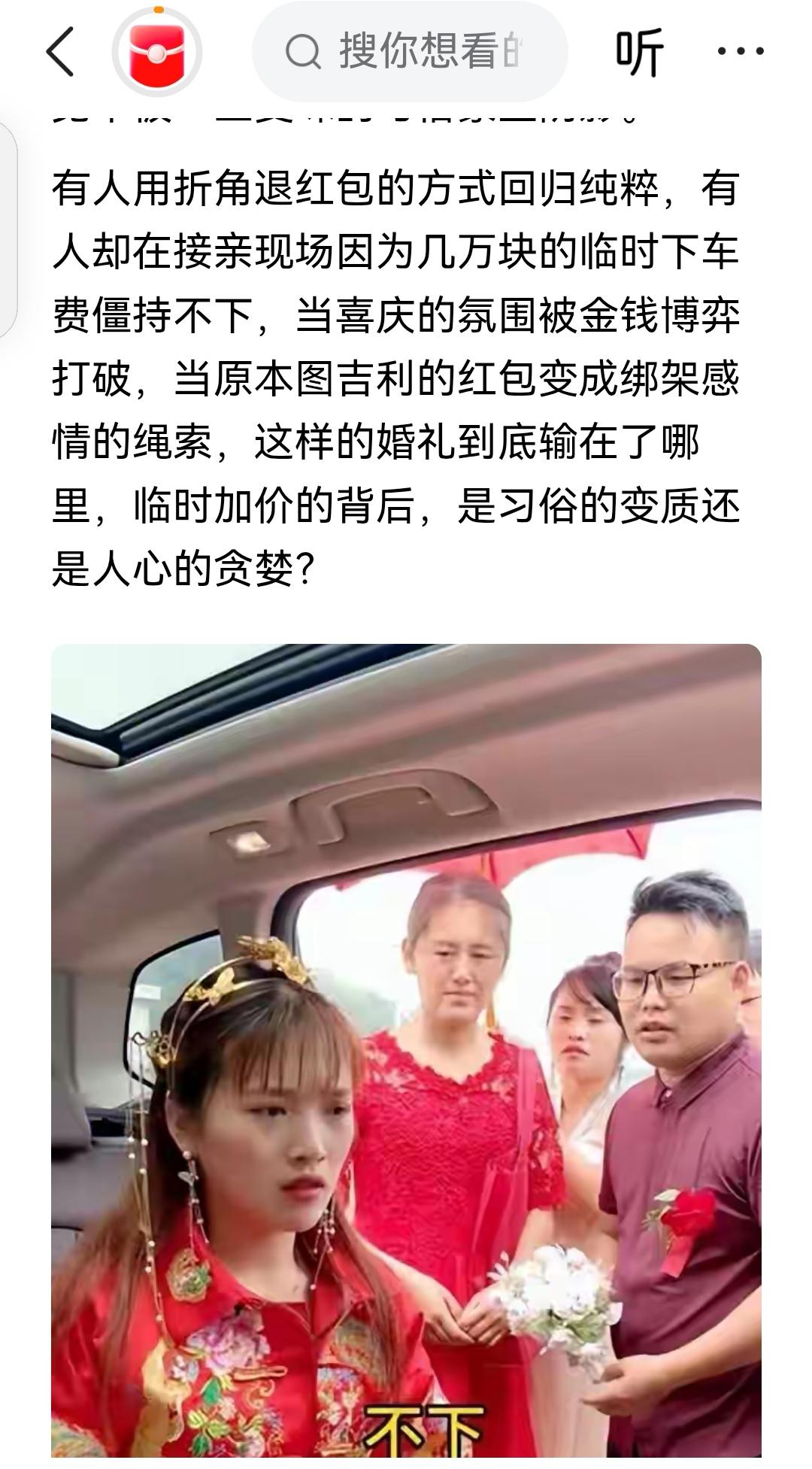 婚礼现场坐地起价,新郎转身就走! 原本谈好18.8万彩礼,接亲时女方家属突然加价6万“改口费”,新娘下车前再索要1万“下车礼”。新郎当场崩溃,摔花离开:“这婚不结了!”据调查,近七成年轻人因高价彩礼恐婚,部分地区婚礼花费年均涨20%。 当婚姻被明码标价,纯粹的感情终将成为奢侈品。 你身边有因彩礼谈崩的案例吗?支持新郎的做法吗?