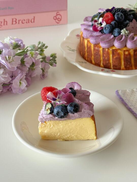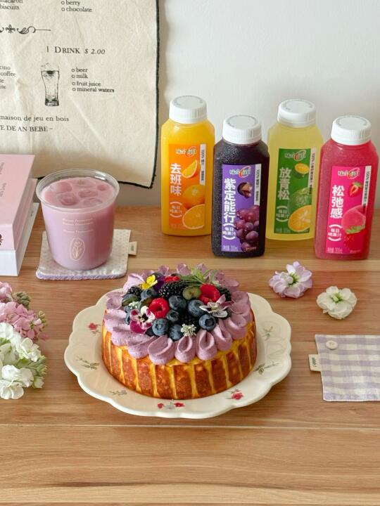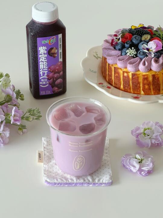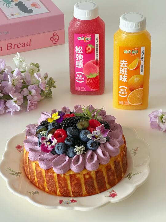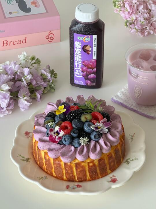 今天的下午茶果香味十足,自制的蓝莓奶油鲜花巴斯克,搭配用味全每日c葡萄汁制作的葡萄冰奶,幸福感满满☁️,感兴趣的朋友一起做起来吧!
