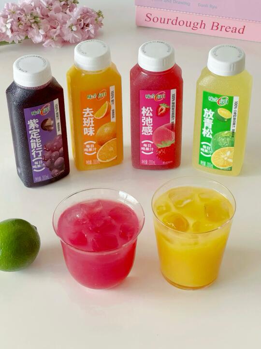 还有橙汁、莓桃复合果蔬汁和小青柠复合果汁也都很好喝,果香味十足,每天换着喝~