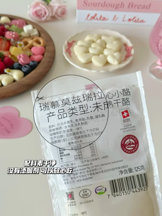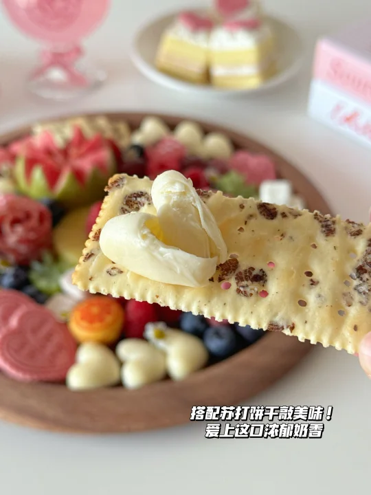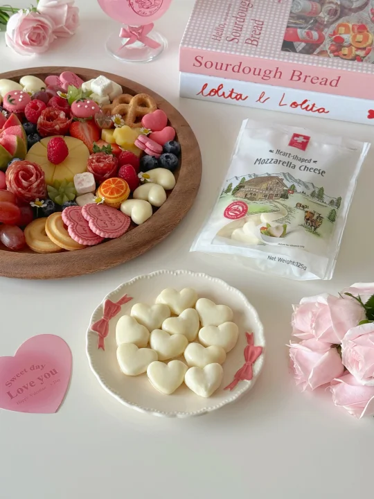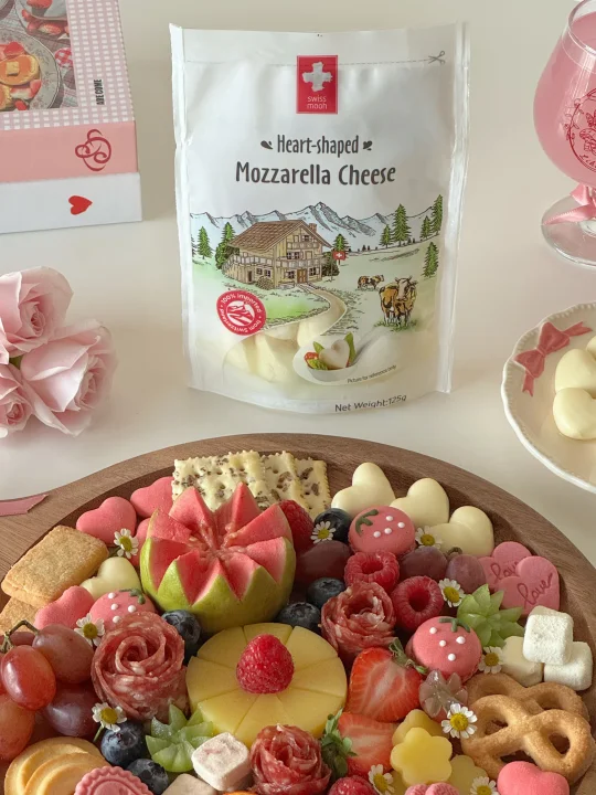 Hi👋朋友们~ 又快到七夕节啦💕今天分享我的七夕奶酪拼盘灵感!感兴趣的朋友一起做起来吧~ · 🍓准备材料: 瑞慕爱心小酪、原生奶酪块、埃曼塔奶酪 草莓、树莓、蓝莓、青提红提、芭乐 爱心饼干、马卡龙、苏打饼干、萨拉米 · 这份奶酪拼盘里用的奶酪制品都是瑞慕家的🧀尤其是这款爱心小酪我敲爱~爱心造型的马苏里拉和节日很适配🥰可以DIY敲多浪漫食谱!采用的是瑞士进口的真原制马苏里拉,配料表hin干净✨小小一颗热量也低~美味低脂还有营养!一口下去Q弹拉丝,奶香味十足🥛推荐给大家!