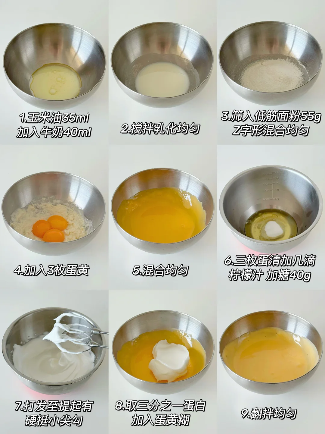 玉米油35ml、牛奶40ml、鸡蛋3枚