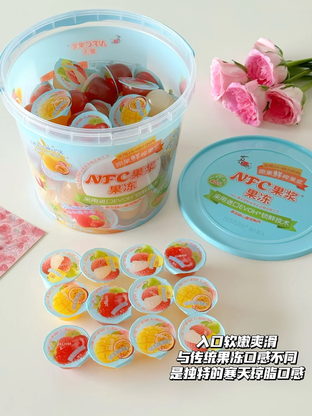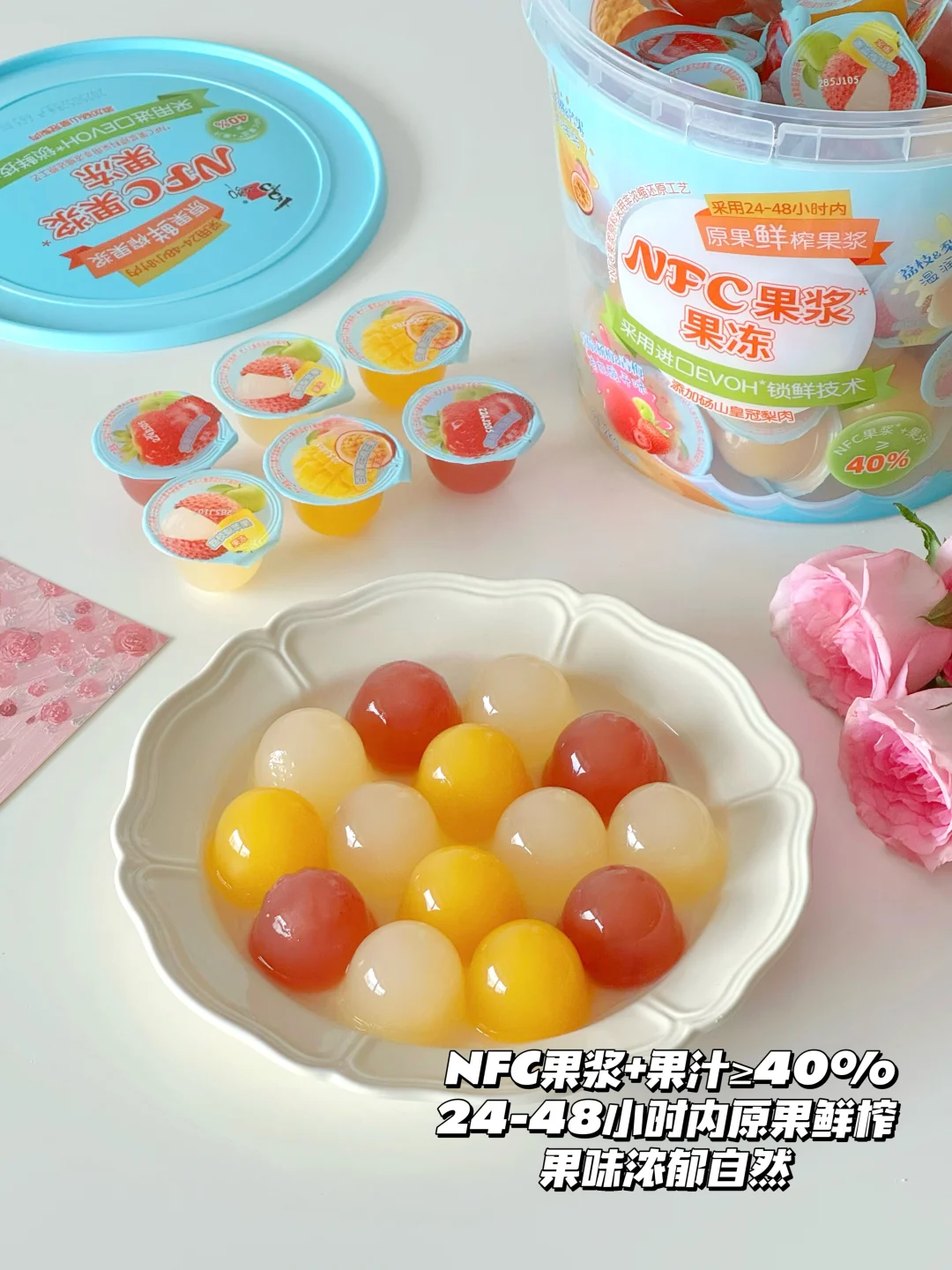 今天用到的果冻是在山姆买的喜之郎NFC果浆果冻🍓这款果冻不同于之前的传统果冻🍮入口软嫩爽滑😋是独特的寒天琼脂口感!采用了24-48小时的新鲜原果鲜榨果浆,吃起来果香味十足🍊