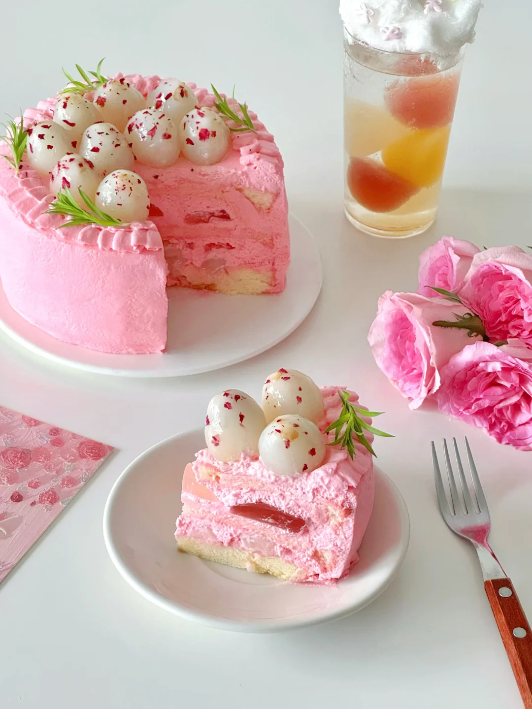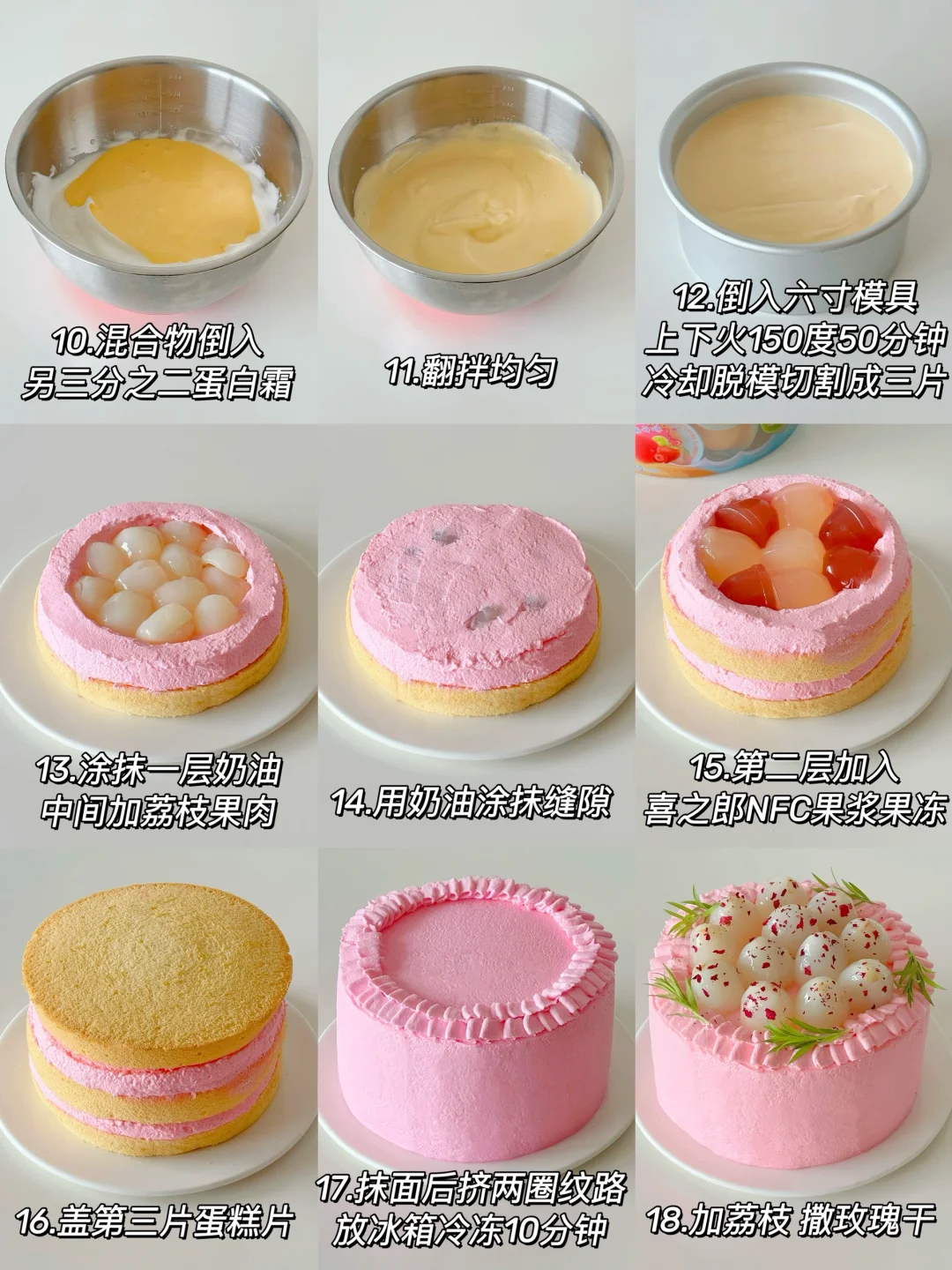 今天在家做了夏日限定的荔枝蛋糕🍰中间的夹心用的是荔枝果肉和喜之郎果浆果冻🍓是果香风味的小蛋糕~感兴趣的朋友一起做起来吧🥰