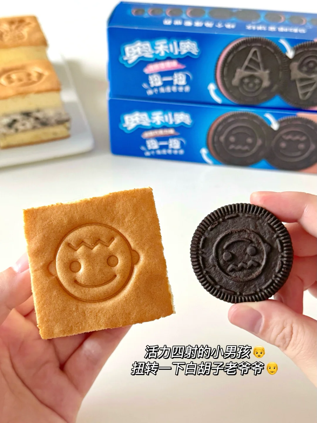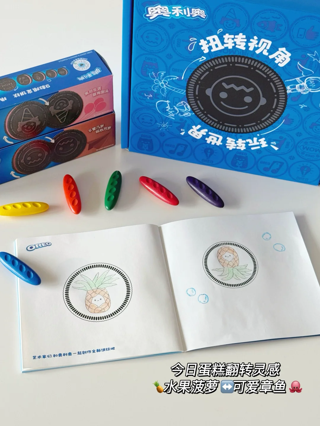 奥利奥这次出了很多有意思的新饼纹,让简单的图案也变得有趣了起来🤡白胡子老爷爷扭转一下就变成了活力四射的小男孩,还有MOM扭转一下就变成了超WOW的“神奇”妈妈,口感依旧是香香脆脆的hin美味😋还是我童年记忆的香甜味道,礼盒还有限量的口袋绘本和蜡笔🖍️绘本上还有很有趣的小故事,这次我把蛋糕上的扭转图案也画在了空白饼纹页上,菠萝也能变成章鱼,可可爱爱!