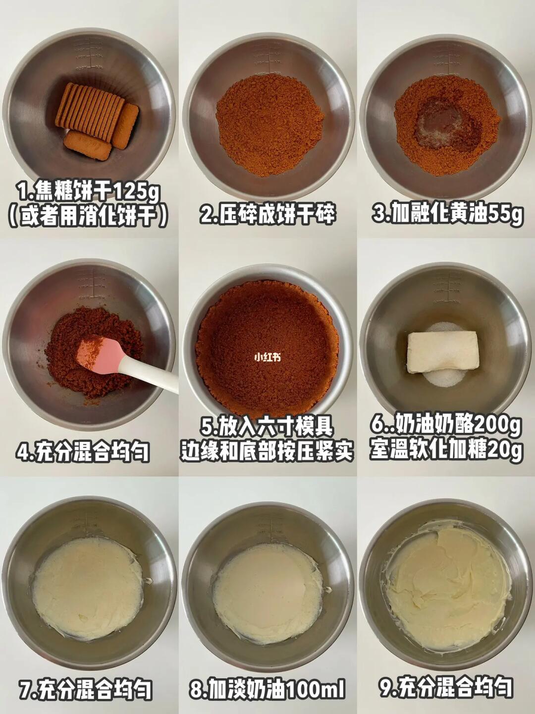 饼干底:消化饼干/焦糖饼干125g、黄油55g