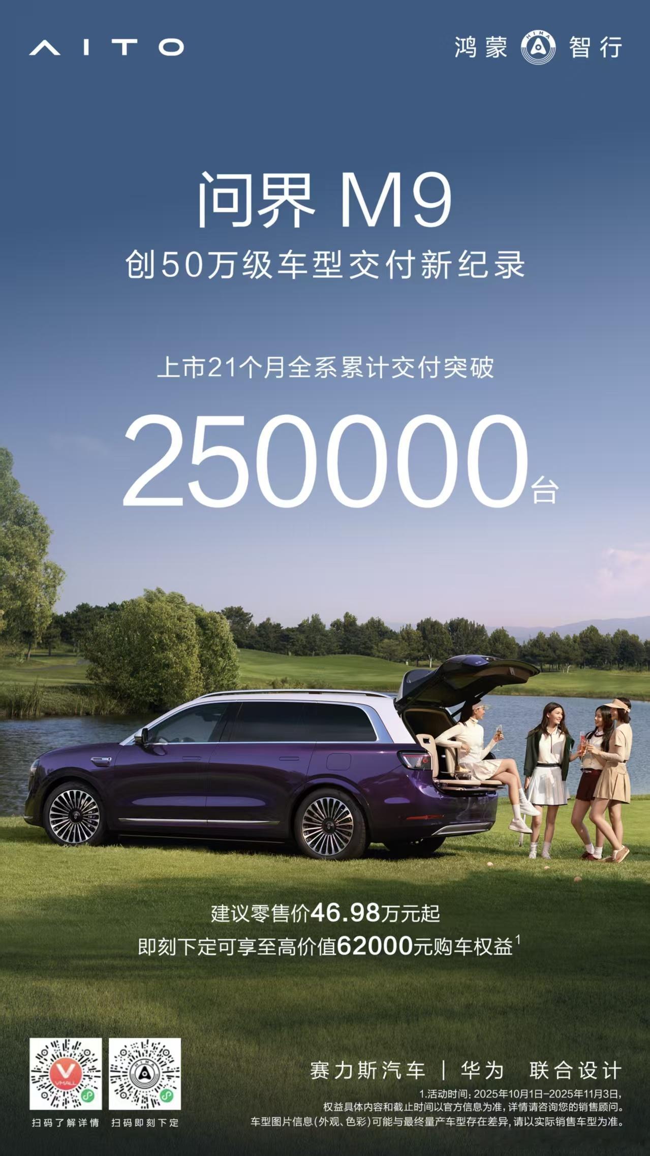 50万级别销冠问界M9,上市21个月累计交付25万台。