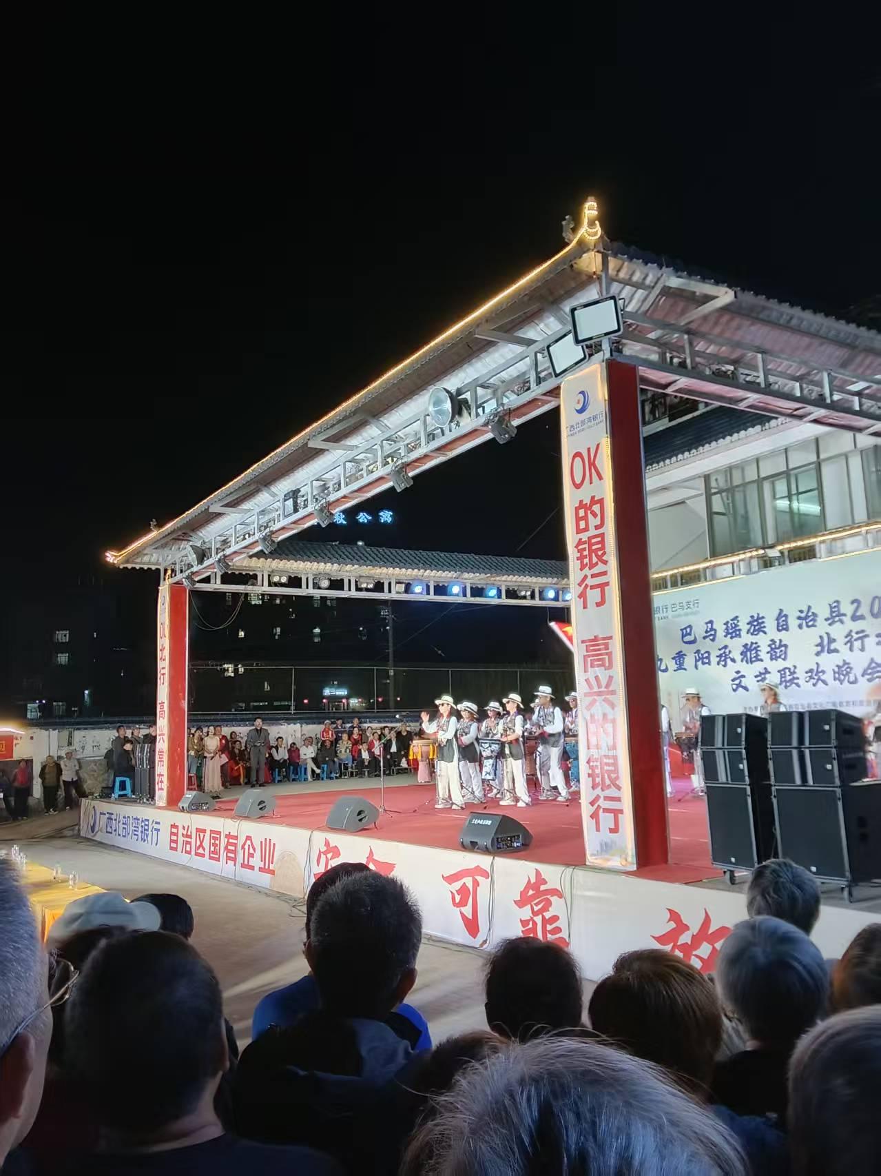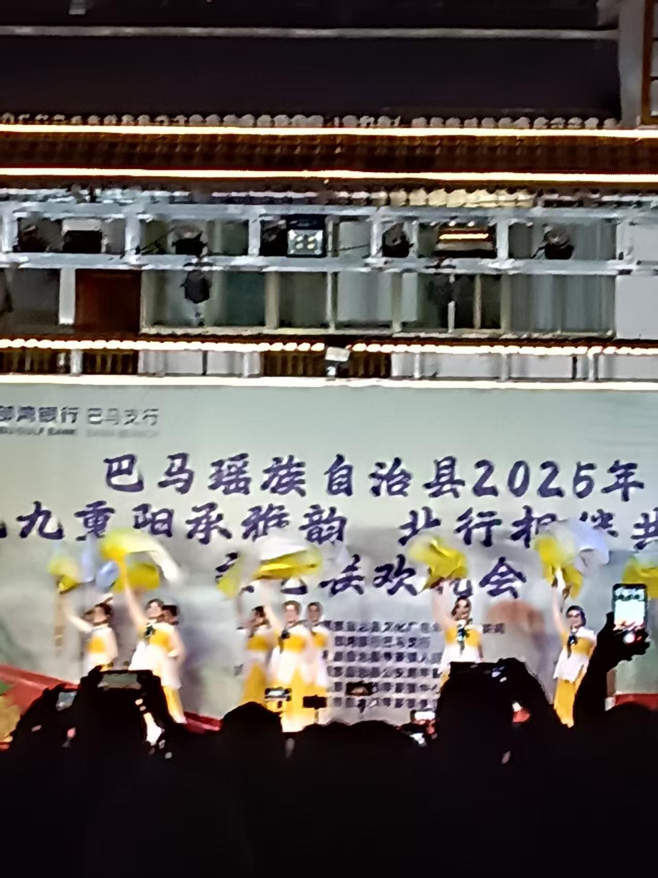 巴马九九重阳大型文艺演出 巴马长寿乡坡月村足拉屯文化广场,今晚7点上演了一场名为“巴马瑶族自治县2025年九九重阳录雅韵,北行相伴共安康”文艺晚会。 第1天到来就收到了两份惊喜真是运气满满的。