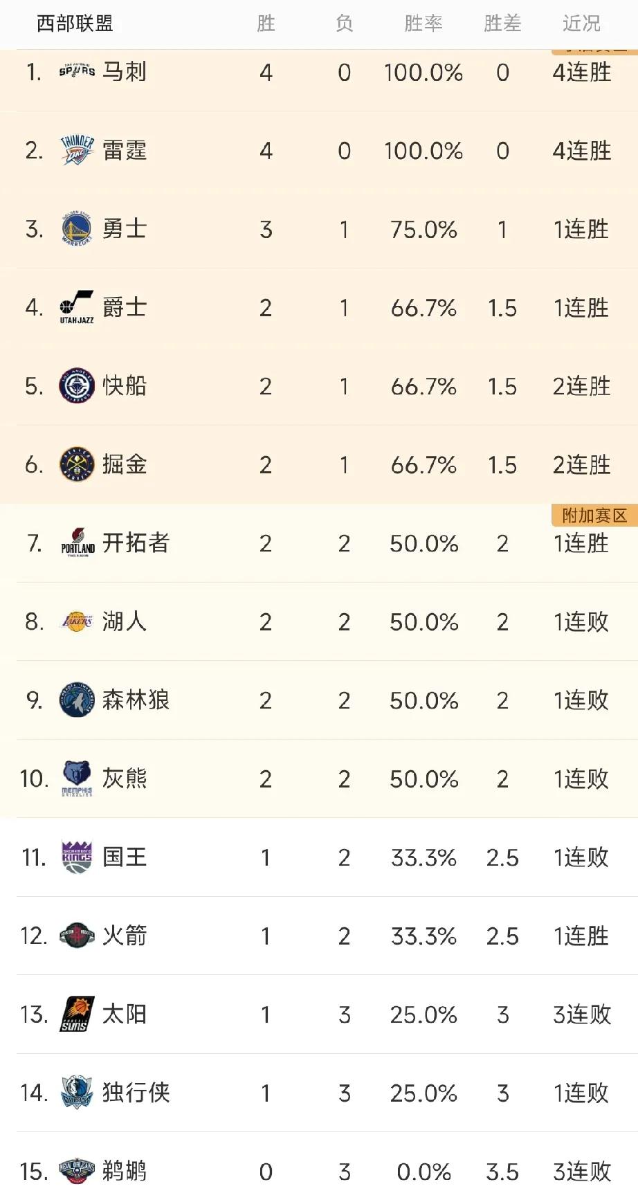 NBA10月28日排行榜 出乎意料,西部竟然只有鹈鹕一胜难求,目前0胜3负排倒数,关键是鹈鹕也没有啥伤病啊,怎么就变得这么菜了?在看人家马刺,仅仅摆烂几年,现在就变成西部劲旅了。鹈鹕好意思吗?看来胖虎带队能力真的堪忧啊!