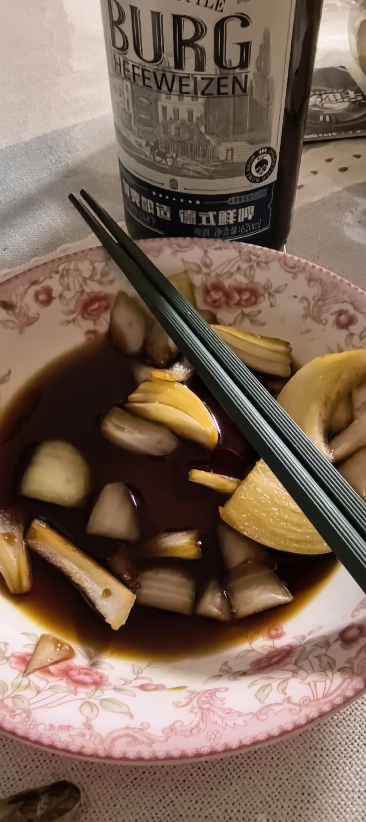 晚上想喝上一杯,切了半个洋葱,抓了一把花生,竟也将一瓶啤酒喝了下去! 想起了二十几年前刚参加工作时,单身汉一个,和朋友晚上喝上一瓶啤酒,下酒菜就是一袋花生和一袋豆腐干!也是开心! 如今条件好了许多,但心境却早无年少时的轻松与简单!好友也渐渐离散! 青春啊!怀念啊!