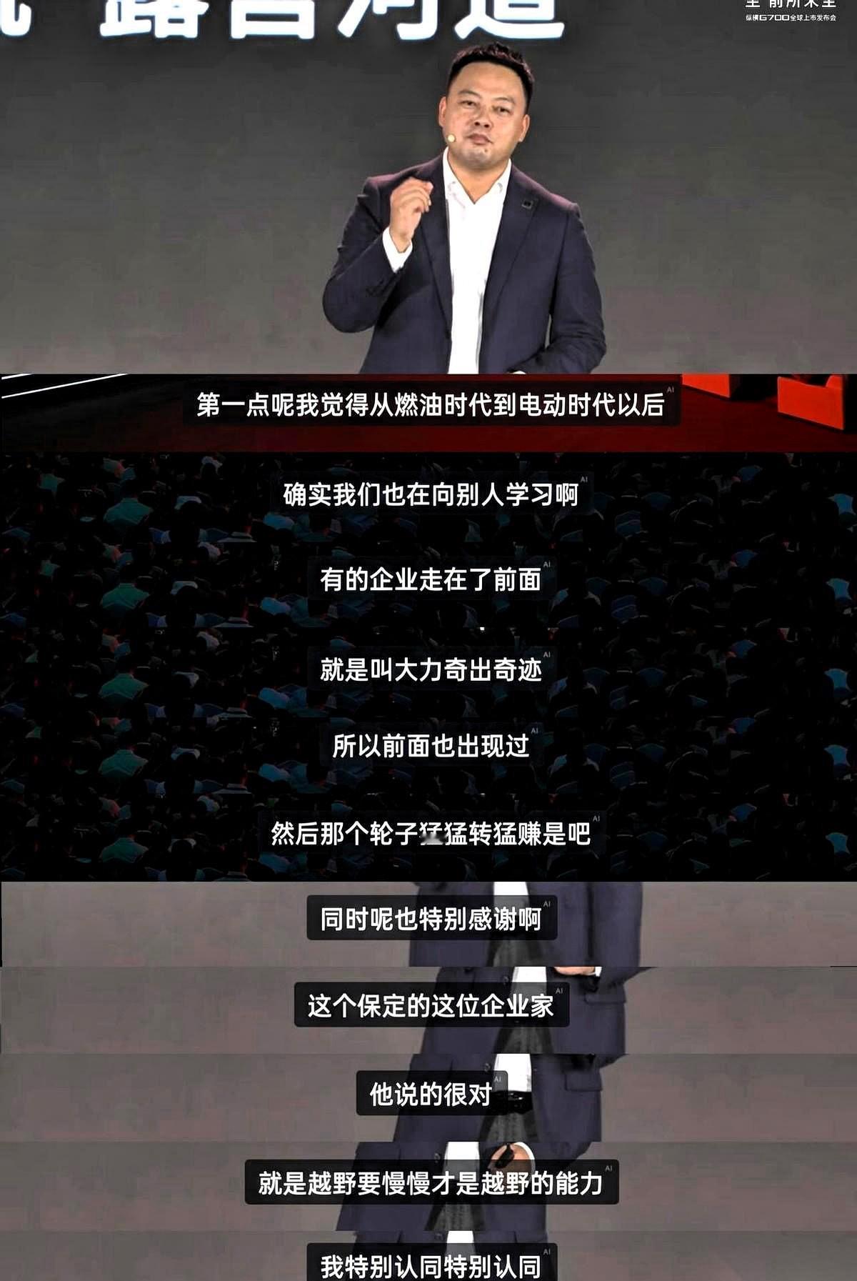 奇瑞当着所有人的面,感谢了长城。 你没听错,在捷途的发布会上,奇瑞总裁李学用,对着空气喊话,特别感谢那位“保定的企业家”。 感谢他啥呢?感谢他终于把一个道理给说明白了:越野,要慢。 这事儿就有意思了。 以前,尤其刚搞电动越野那会儿,风气是啥?“大力出奇迹”。恨不得四个轮子转出火星子,以为马力大、扭矩大,就能豁一切。结果呢?那不叫越野,那叫刨坑。帅不过三秒,电量哗哗掉,车在泥里把自己埋得更深了。 现在,这帮大佬,终于想明白了。 从长城的魏建军,到奔驰,再到现在的奇瑞,大家不约而同开始强调“慢”。 你以为越野是比谁油门踩得狠吗? 错了。 真正的越野,是脑子走在车轮子前面。是眼睛在找线,是屁股在感受抓地力,是用最“小”的劲儿,干最“难”的活儿。 慢,是心里有数,是脚下有根。是精准控制,是四两拨千斤。 所以你看,行业越来越成熟,就不再讲那些傻快傻快的蛮力故事了。 开始回归常识,回归对物理规律的尊重。 真正的牛逼,从来不是咋咋呼呼的。 在这个充满快速节奏和瞬时激情的时代,“慢”似乎成为了一种反叛的力量。过去,我们总是想着越野要“猛”,越是野蛮,越能征服大自然的挑战。车企们把越野当成了一个力量的象征,不惜通过高马力、高扭矩来创造冲击感,给消费者带来震撼。而这种过于依赖蛮力的做法,最终却让越野车成了“大力出奇迹”的代名词,结果不仅耗电大,常常还陷在泥地里动弹不得,真正的越野成了个笑话。 现在,随着技术的逐步发展,越野的“慢”反而成了新的潮流。奇瑞、长城等品牌的思路逐渐趋向理性。慢,成了对越野的重新定义。慢不仅仅意味着车速放缓,更意味着驾驶者心态的成熟。过去,越野车的驾驶者或许把“快”和“强”视作制胜的法宝,但现在,大家明白了,越野的核心不在于极速冲刺,而是如何在各种复杂地形中以最小的动作、最精准的操控去应对挑战。越野,不再是简单的爆发力,而是智慧和技巧的结合。 让我们细想一下,越野的真正含义是什么?它不应该是暴力的驱动,不应当是毫无节制的“猛”。而是一种控制力,一种对自然和物理规律的尊重。当你在崎岖不平的山路上驾驶时,最重要的不是油门踏板被踩得有多深,而是你如何感知轮胎与地面的接触,如何判断车身的稳定性,如何通过适时调整车速,精确地把车引导过每一个障碍。所有这些,都是驾驶者与自然环境的对话,而非单纯的力量对撞。 所以说,“慢”是回归理性。越野的技术在逐渐成熟的同时,车企们也不再去追求那种极限的速度和爆发力。相反,越来越多的品牌在强调的是如何精准地掌控每一个细节,如何让驾驶变得更加精致,如何让车与自然的互动更加和谐。慢,不仅是为了更好地适应复杂的越野环境,也是为了让电动越野车在续航和能效上更加平衡。而这,恰恰是车企们面对环保压力、技术限制后的智慧选择。 我们不得不承认,慢是越野的新智慧。它意味着车企们不仅在打造车辆的硬件,更在重新塑造驾驶者的思维方式。随着越野车技术的不断进步,车辆不再是一个单纯的工具,而是与驾驶者协同作战的伙伴。驾驶者的每一个判断、每一个动作,都可能影响到整个越野过程的成败。所以,精确的控制、敏锐的判断和细腻的感觉才是越野真正的精髓。 然而,慢的背后也许并不容易被所有消费者所接受。毕竟,曾经的越野风潮总是充满了速度和力量的元素,那种瞬间的激情和心跳加速感,确实很难从“慢”中找到。今天的越野,讲求的是更多的智慧和策略,而这对于那些追求刺激的消费者来说,未必能完全迎合他们的需求。但无论如何,行业的转变是必然的。随着技术的进步和环保理念的普及,“慢”也许才是越野的正确姿势。 在这场变革中,车企们的思维逐渐成熟,消费者的需求也越来越理性。未来的越野车,可能不再是极速冲刺,而是细水长流,精准控制的艺术。对于车企来说,如何在这种趋势下调整产品定位,如何平衡传统激情与现代技术,才是他们面临的最大挑战。奇瑞汽车 奇瑞 奇瑞集团销量 奇瑞集团 奇瑞车 奇瑞ⅴ 奇瑞技术 奇瑞创新大会 各位读者你们怎么看?欢迎在评论区讨论。