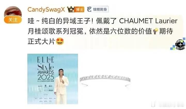 于适和elle主编孙哲为elle八十周年红毯开场,佩戴尚美冠冕,预告elle新封