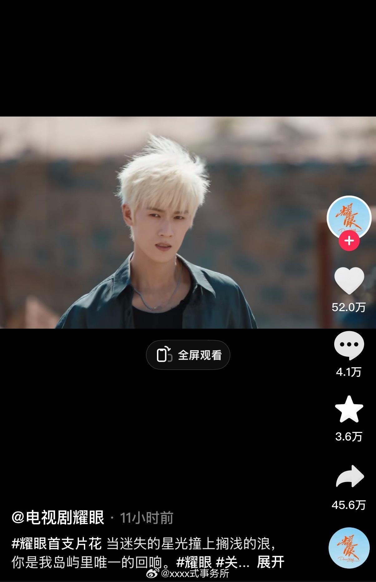 关晓彤 李昀锐耀眼有效预告,发布仅10小时已达到50w+点赞 45w+转发,预告即出圈