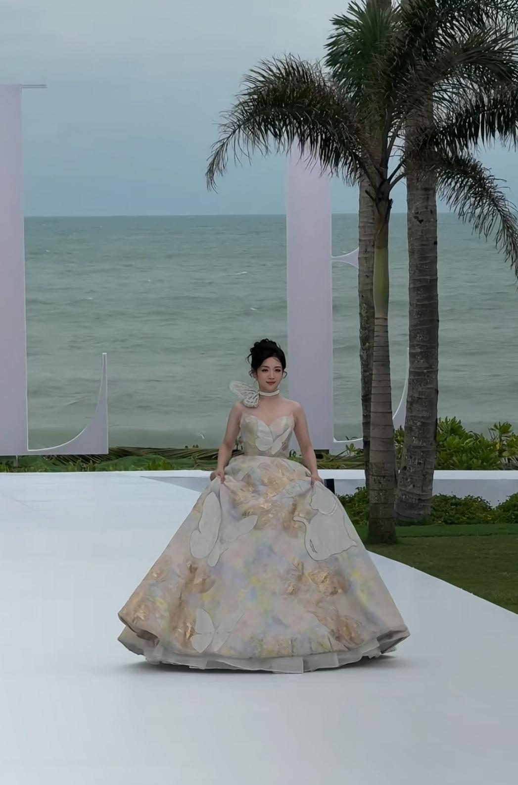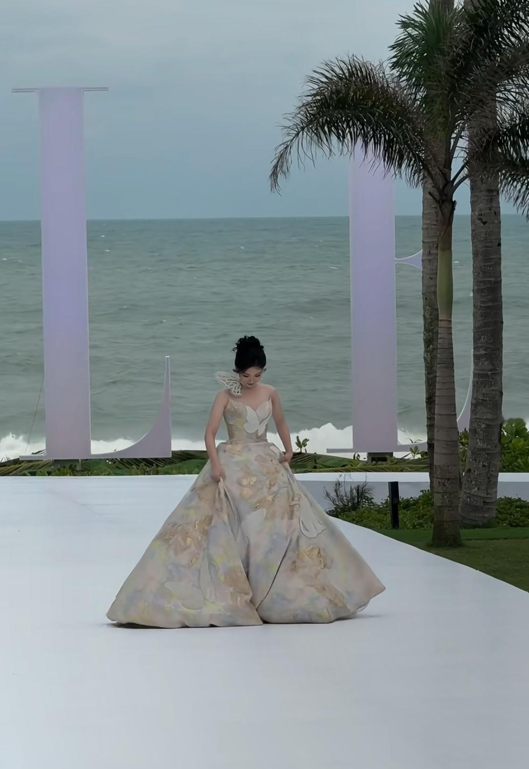 代露娃海边红毯:每走一步都如此艰难 代露娃这身大裙摆又大又笨重,设计师怎么想的呀,裙摆宽得快占满红毯,她走两步就得扶裙摆,最后还是没稳住趔趄摔跤,爬起来立刻扯着裙摆笑,女明星表情管理太厉害了。 海边风+大裙摆+露肤款,等于把“难穿”叠满了buff。女明星踩着高跟鞋、裹着超重工裙子,还要随时担心被走光,既要美得出圈,又得扛住突发状况,镜头前的惊艳,全是咬牙绷着的体面啊。