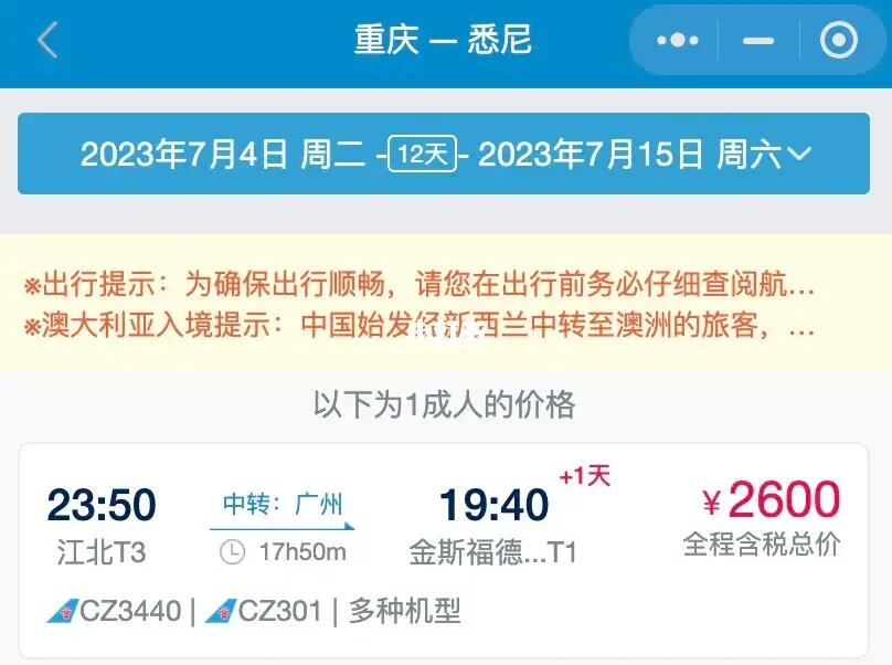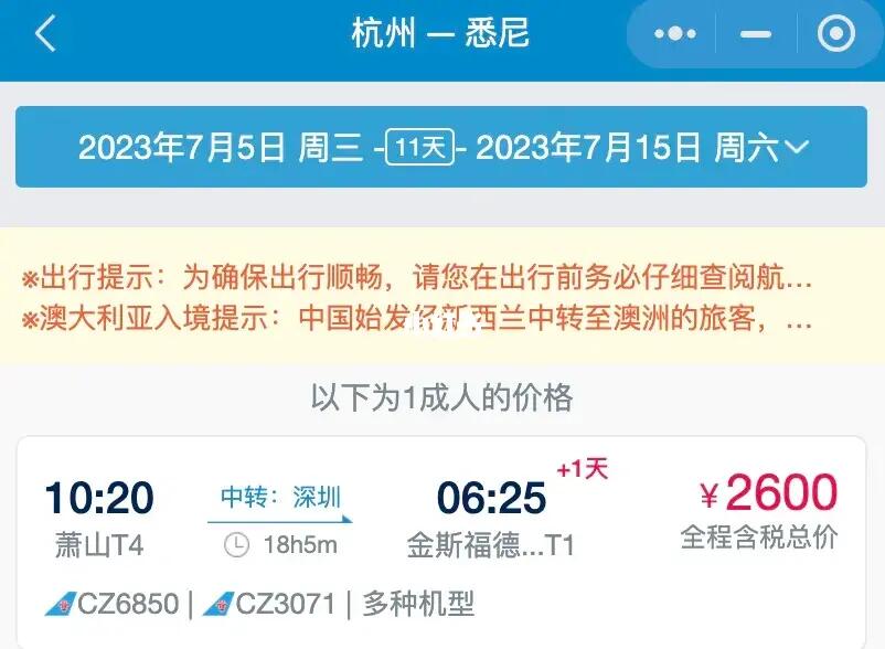 全国飞悉尼太便宜了|往返含税只要2600