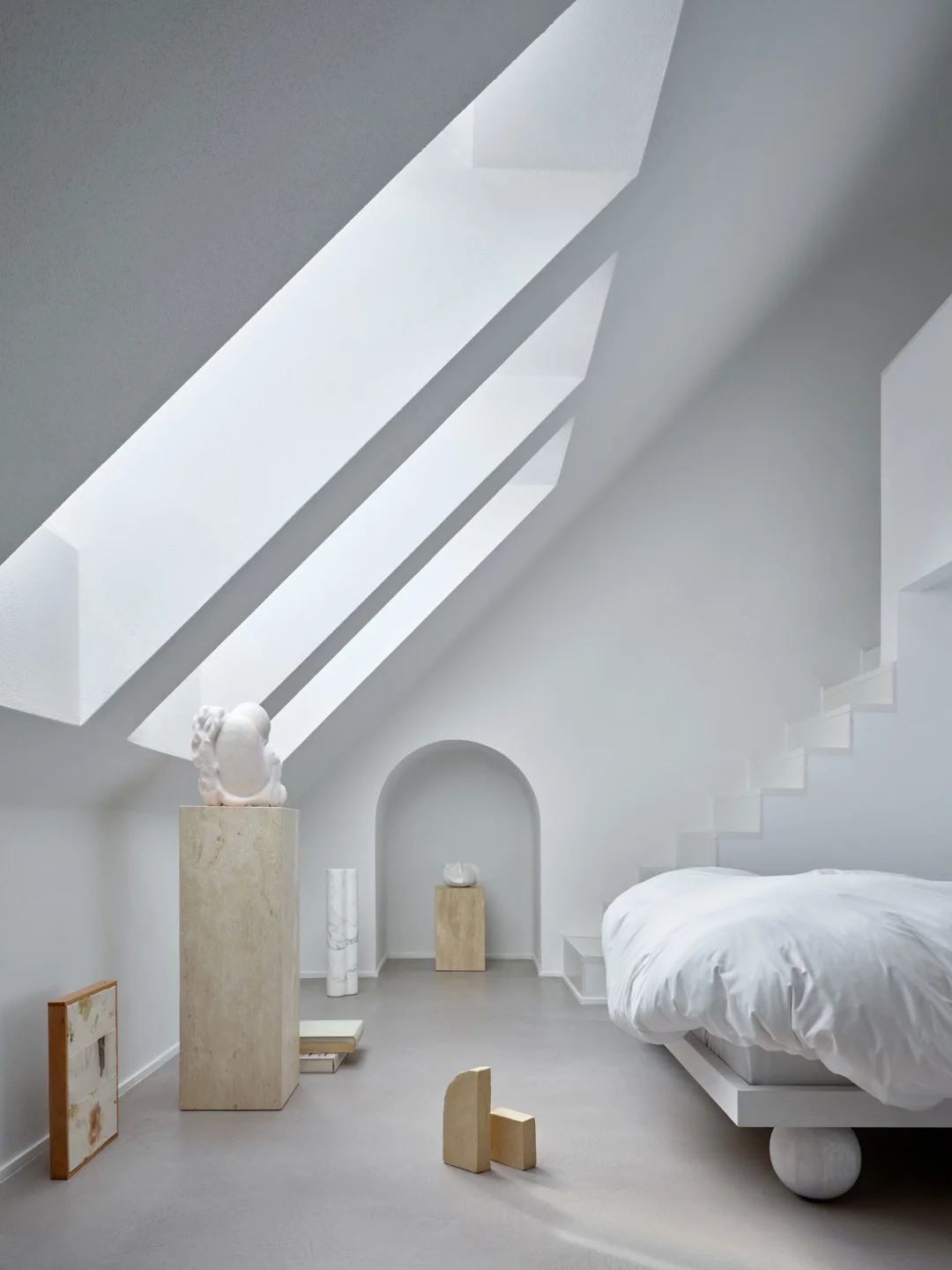 从牧场建筑的形态延伸到教堂式的室内灵感,House Oskar 如一处与自然同步的空灵场所。 一所房子,连接日光、记忆与艺术。