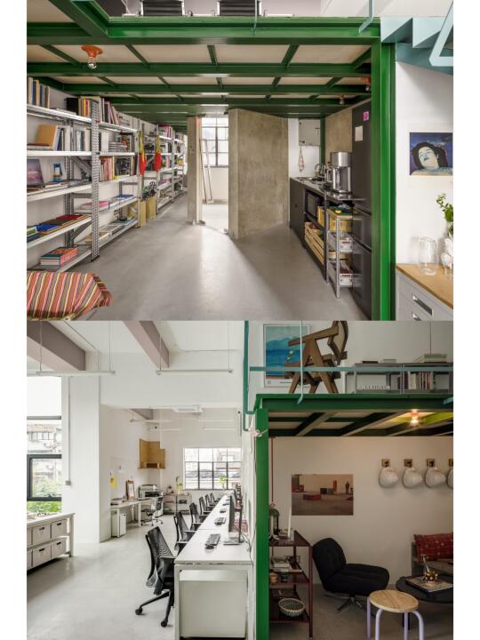 内上将这里改造为可观、可游,可让精神高扬的工作场所,让设计师们能轻松自由地展开设计工作,同时也进一步促进了来访者和工作室之间业务交流和灵感对话。
