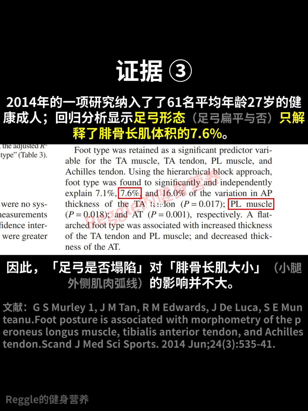 (3)足弓塌陷与否,只解释了腓骨长肌体积的7.6%。