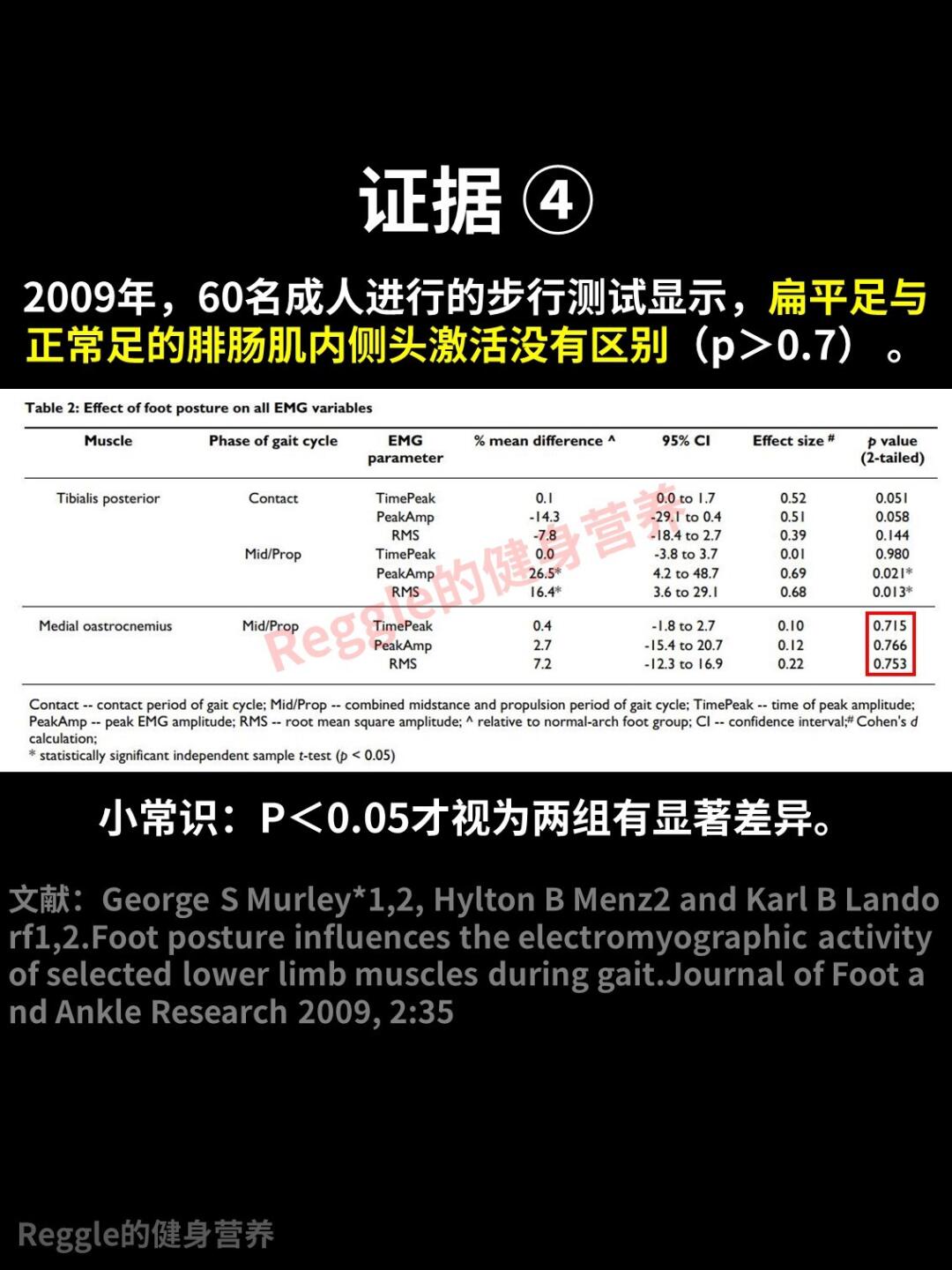(1)在步行测试中,扁平足与正常足弓的腓肠肌内侧头激活没有区别;