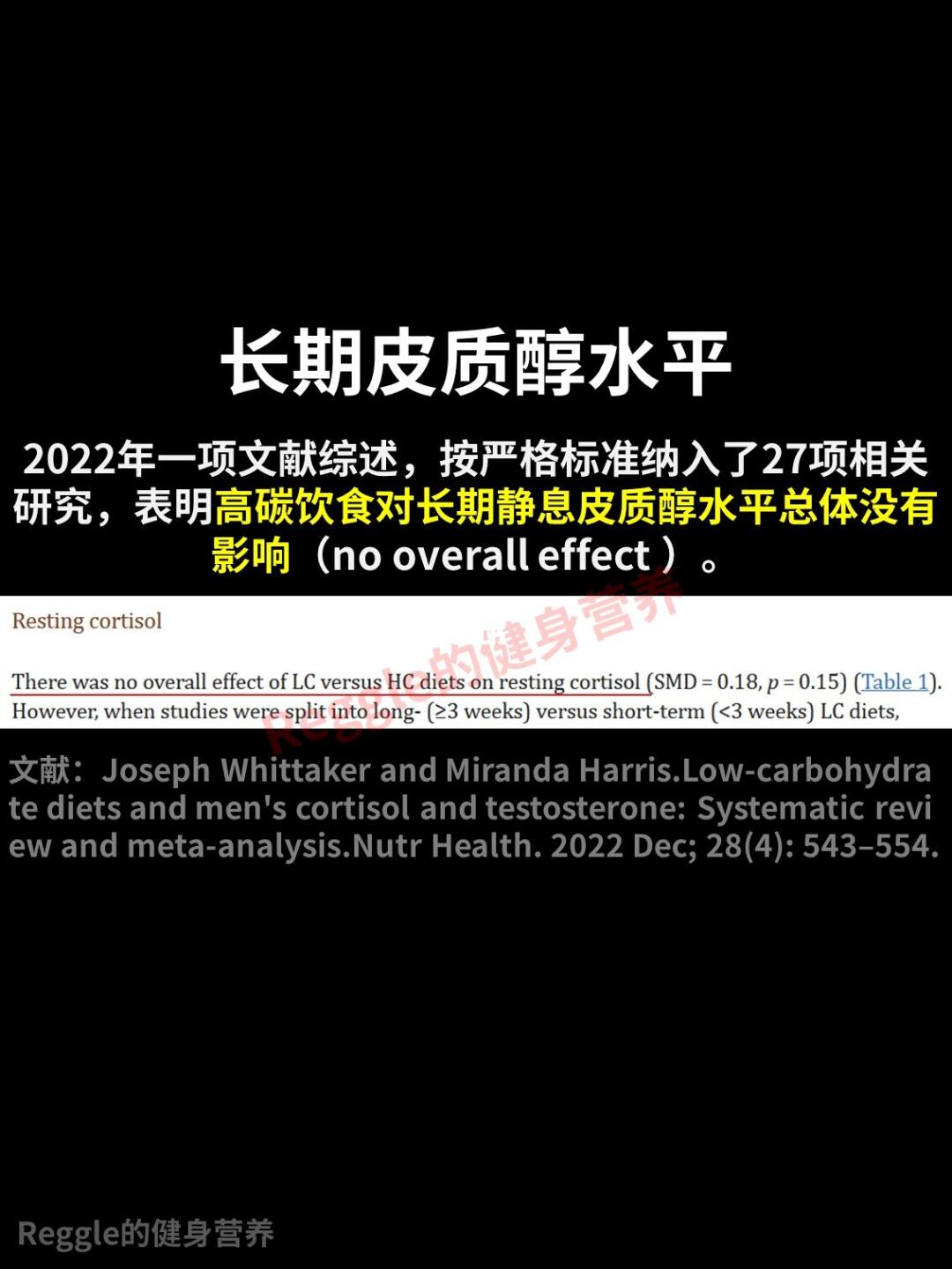 以前我发布过大量「支持减肥吃足碳水」、「碳水实质上很少转化为人体脂肪」的相关内容,但科普要的是实事求是。 足够的碳水对皮质醇的影响有多大,大家看证据。 文献综述和元分析就是最高等级的证据。