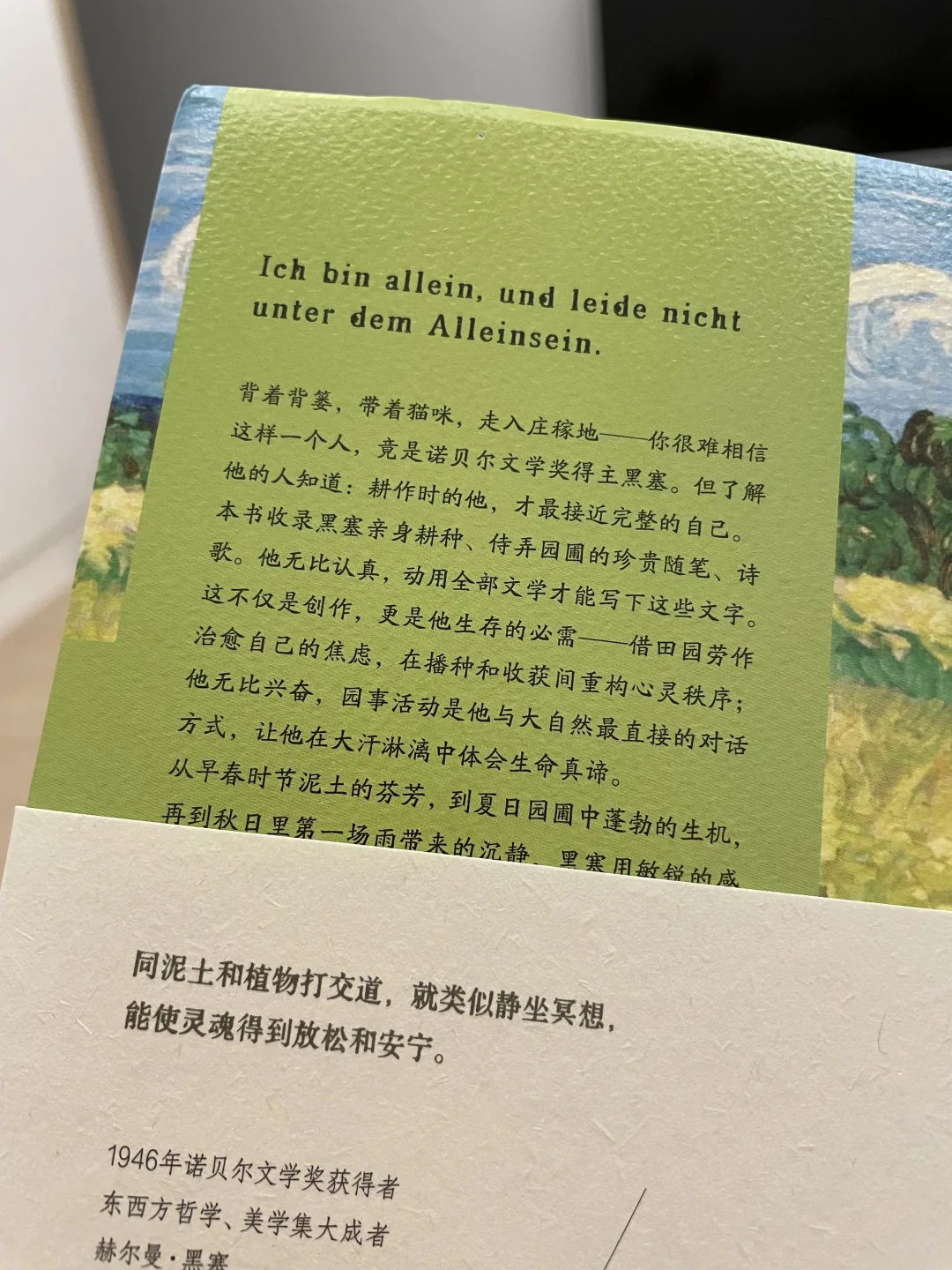这本书最动人的地方在于,它不教你逃离生活,而是引领你更深地进入生活。就像黑塞说的:“真正的宁静不在山巅,而在你如何为莴苣间苗。”当我们学会与泥土、与四季、与孤独温柔相处时,整个世界都会变成我们的花园