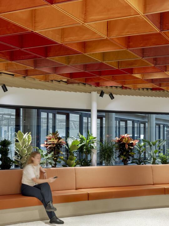 他们的答案是:可回收的地材、含回收成分的定制家具、自然光与绿植共生的空间,兼顾环保与审美,也回应人们日常的使用感受。