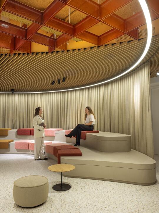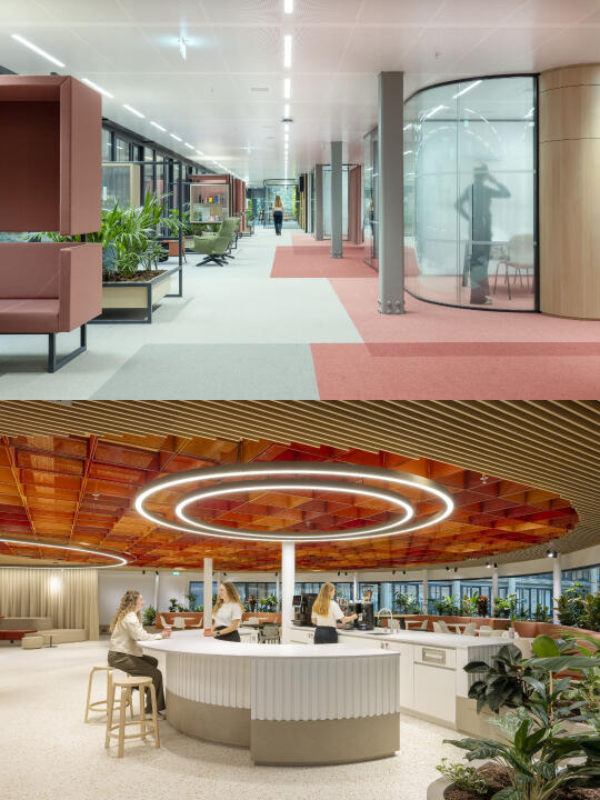 来自40多个国家的员工在这里并肩工作,不同语言与文化背景在这个多层次的设计中自然而然地交汇。每块地毯、每道帘幕,都是多元共处的空间表达。