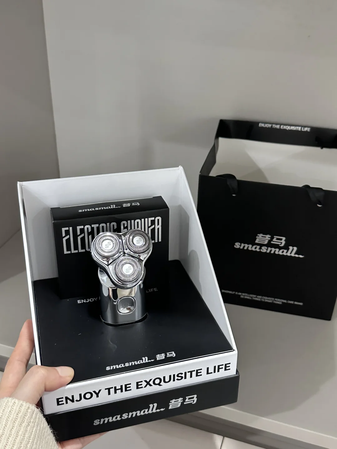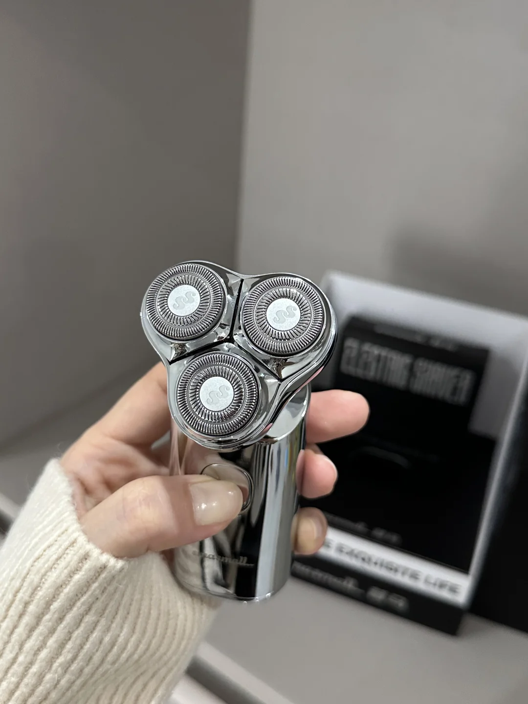 给对象买的🎁终于到了 礼盒的包装颜值好高呀! 电镀银色机身,科技感满满 功能也不错(三刀头高速剃须) 🉑干湿双剃,满足不同需求 打算也给老爸安排一个 毕竟这种实用的礼物最讨喜啦~ 男生礼物剃须刀七夕礼物送男友电动剃须刀实用礼物送礼推荐