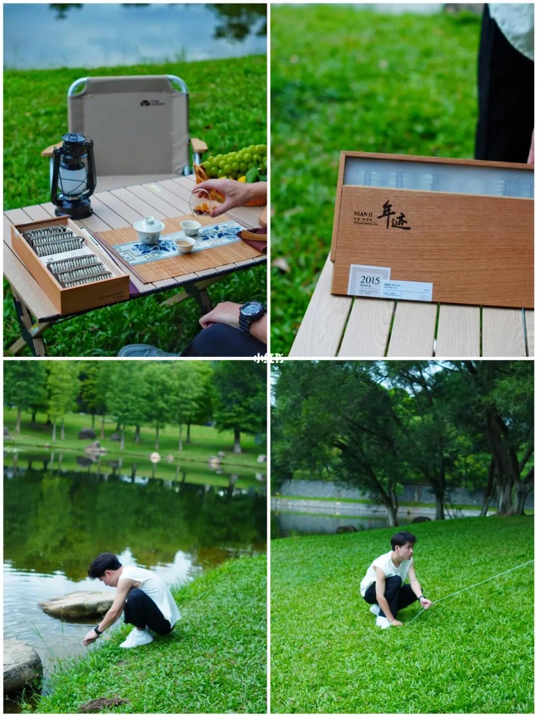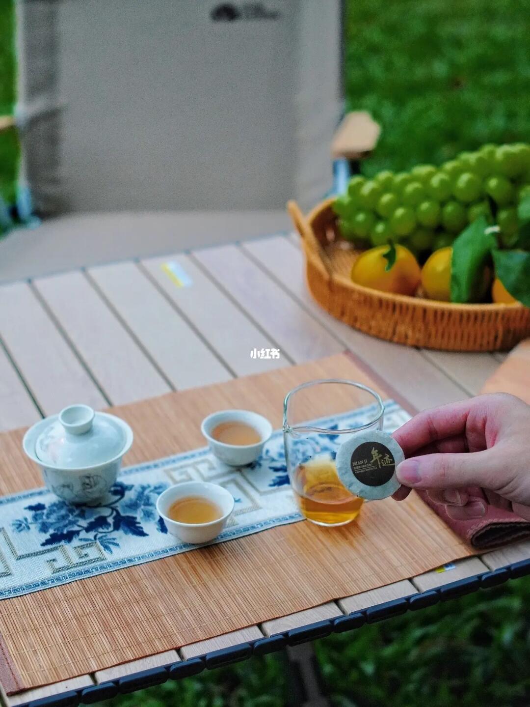 看到这样的湖边景色时,真的就迫不及待拿出上我的茶叶出来泡,是一款年迹的普洱茶,一盒分出很多小饼方便带出露营。