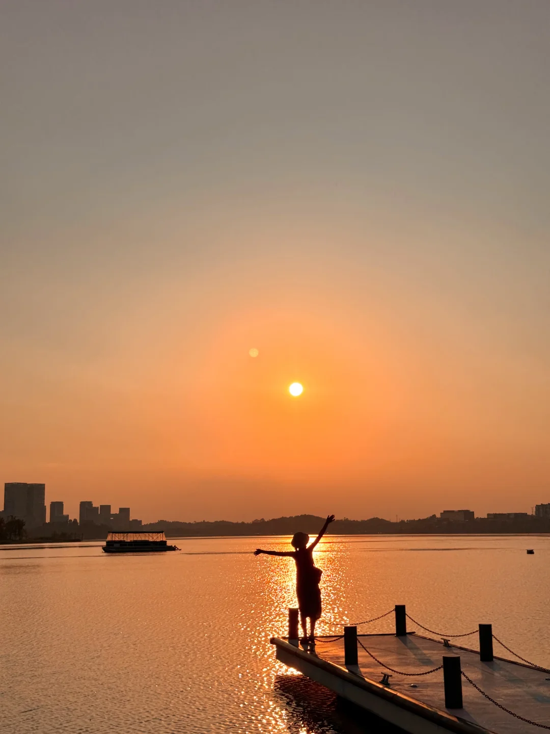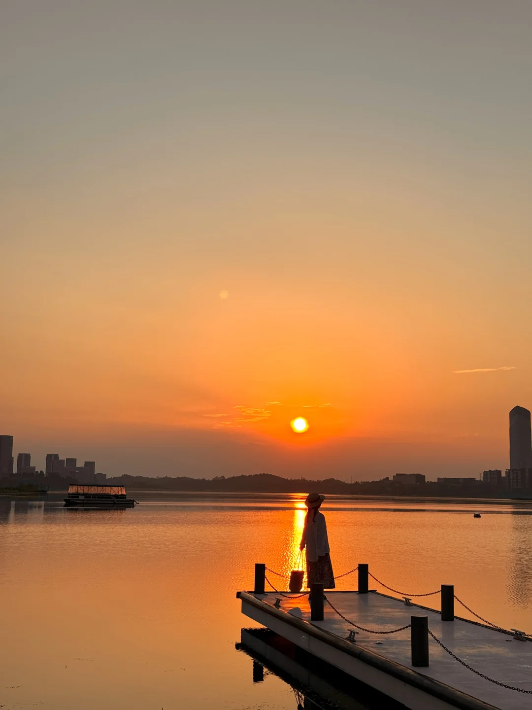 不要再去锦城湖人挤人了 成都人也有自己的lalaland了✨ 或许兴隆湖的落日晚霞更浪漫呢‼️ . 之前来过兴隆湖两次看日落都失败了 昨天本来以为也看不到什么 都准备回去了,没有想到天空渐渐变成粉红 日落、晚霞、湖泊、小船...... 整个兴隆湖城市夜景都尽收眼底🌃 . 昨日7.31实拍(附全live)