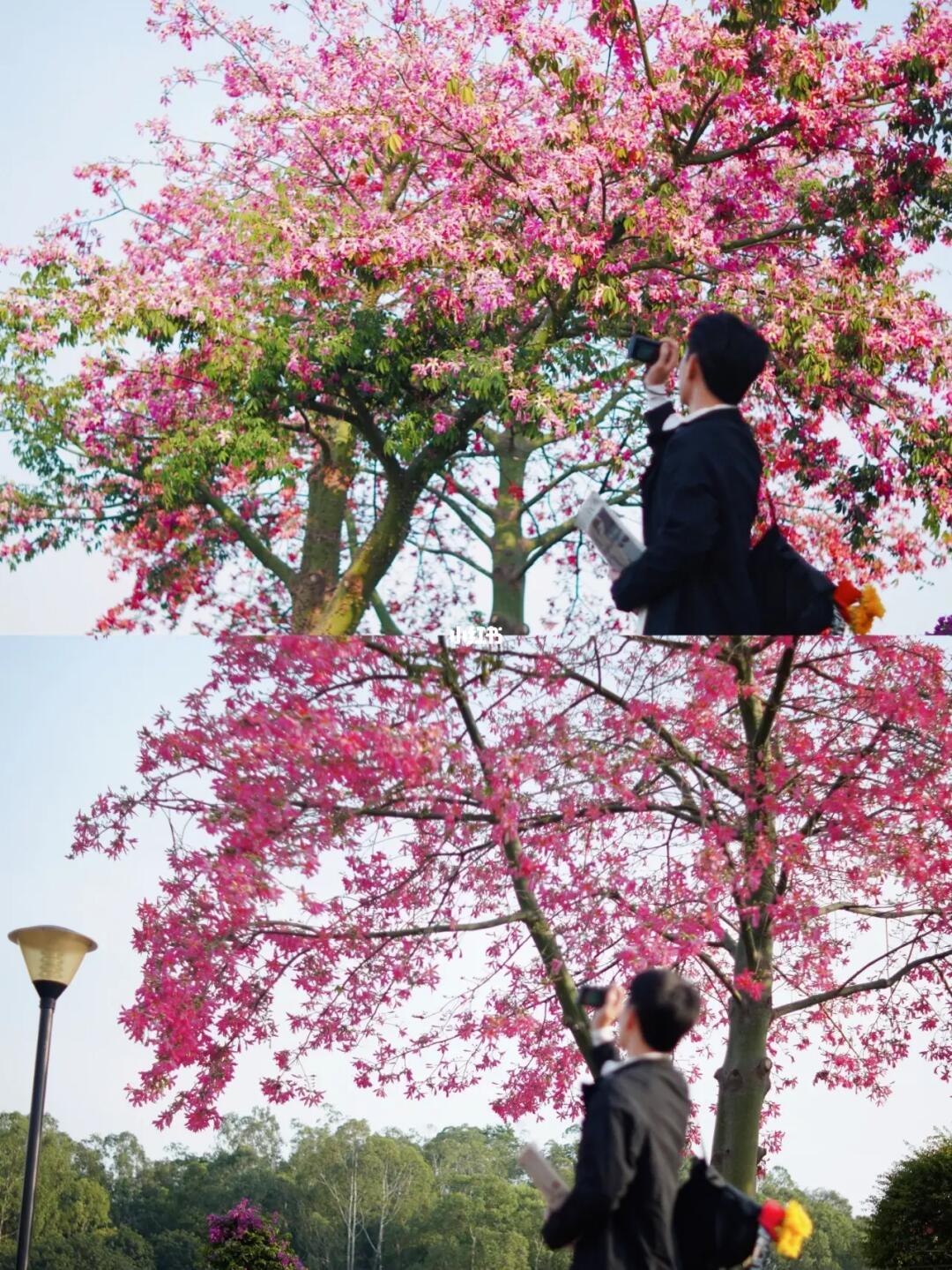 1⃣上到异木棉斜坡那里低机位拍摄,真的很像圣诞树。