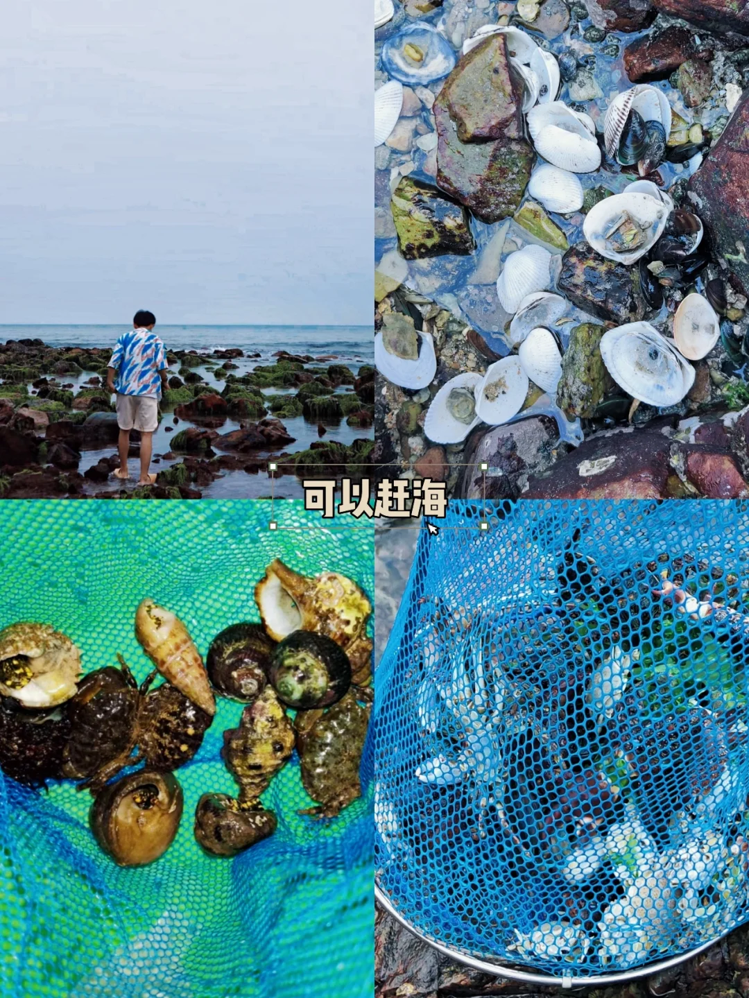 在微信潮汐小程序上看退潮时间!一定要带好手套(翻石头才有海鲜),钳子,桶,水鞋或者拖鞋。还有带上盐🧂抓那种小洞里的。!(抓一盘海鲜不成问题)
