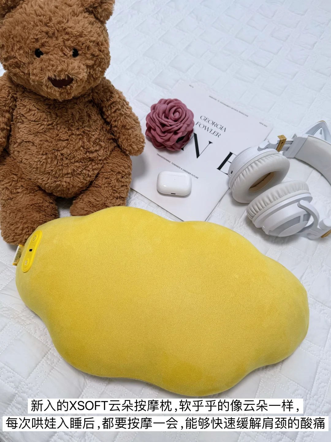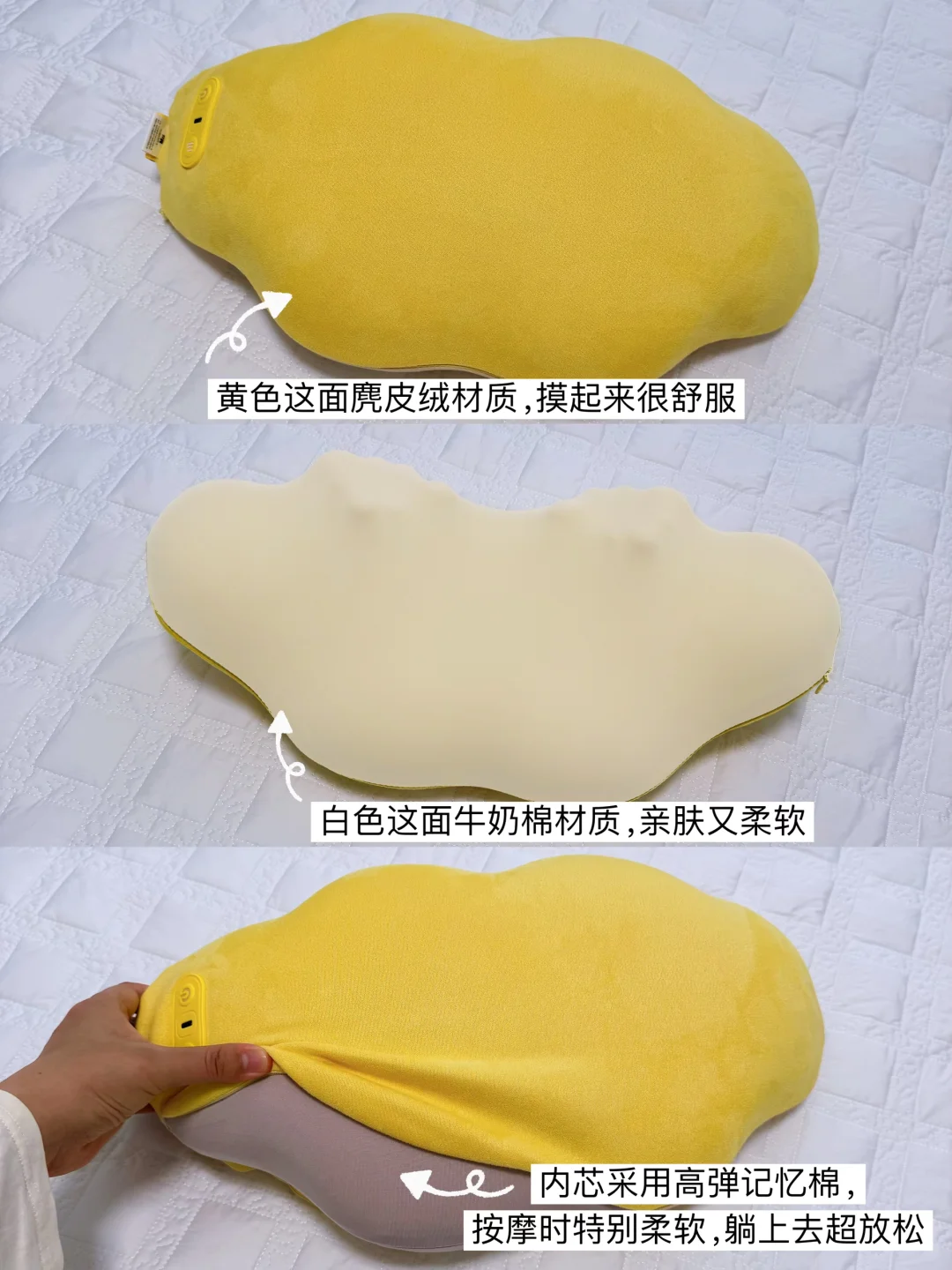 直到我发现了XSOFT云朵按摩枕,开始是被它的颜色吸引了,黄白配色,真的像一朵软乎乎的云☁️非常治愈!