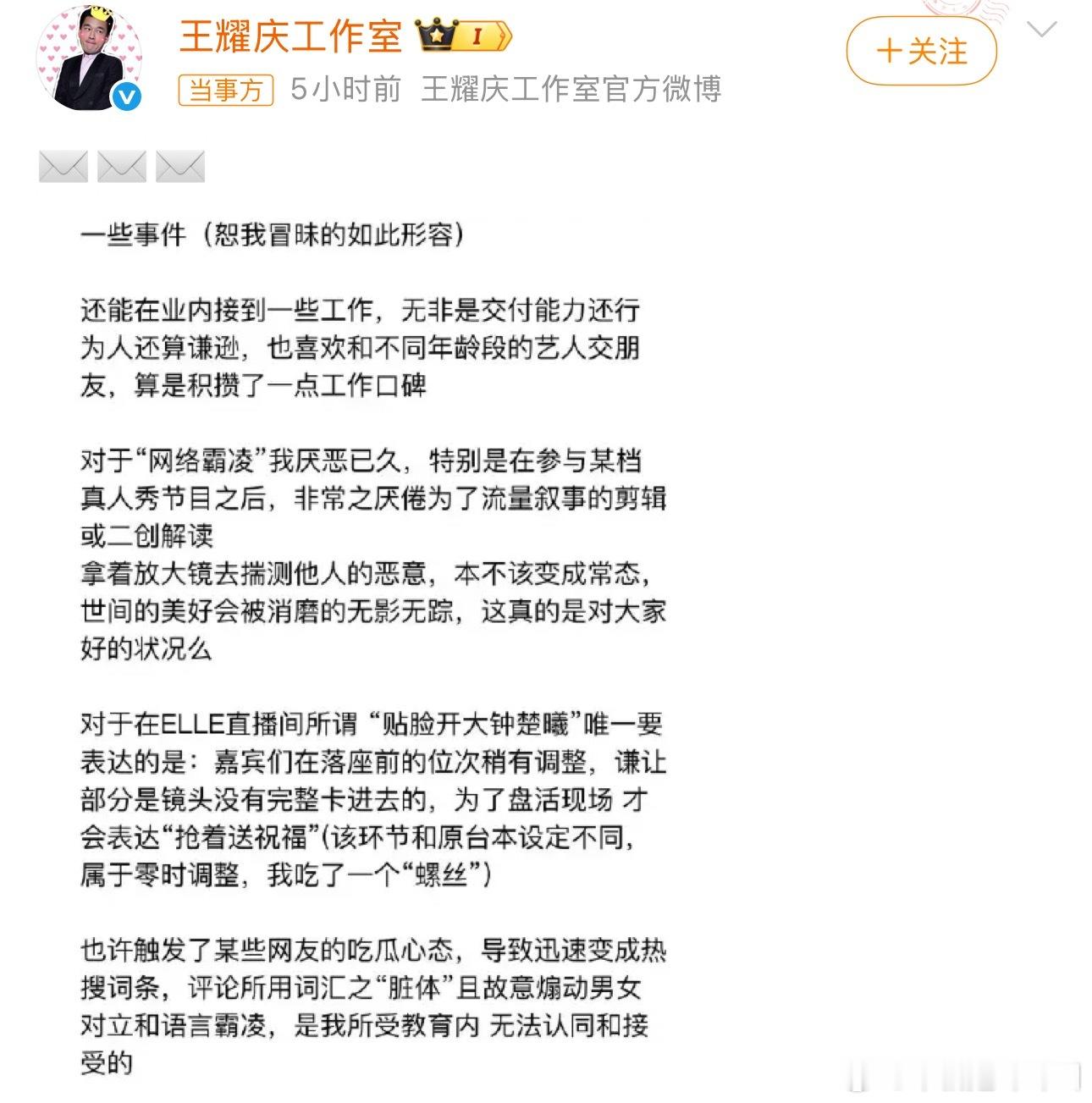 “以我目前在内娱的咖位远没有资格参与或调侃一些事件”