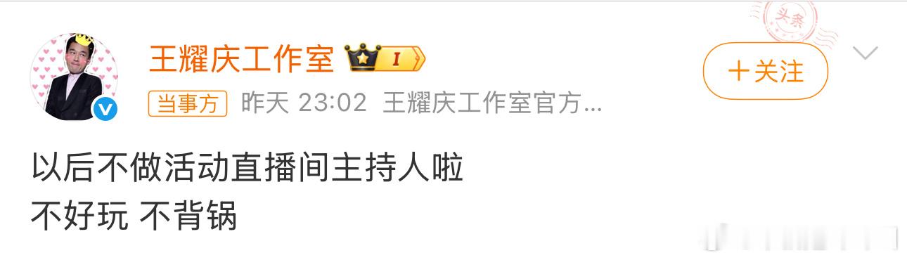 “以后不做活动直播间主持人啦不好玩 不背锅”
