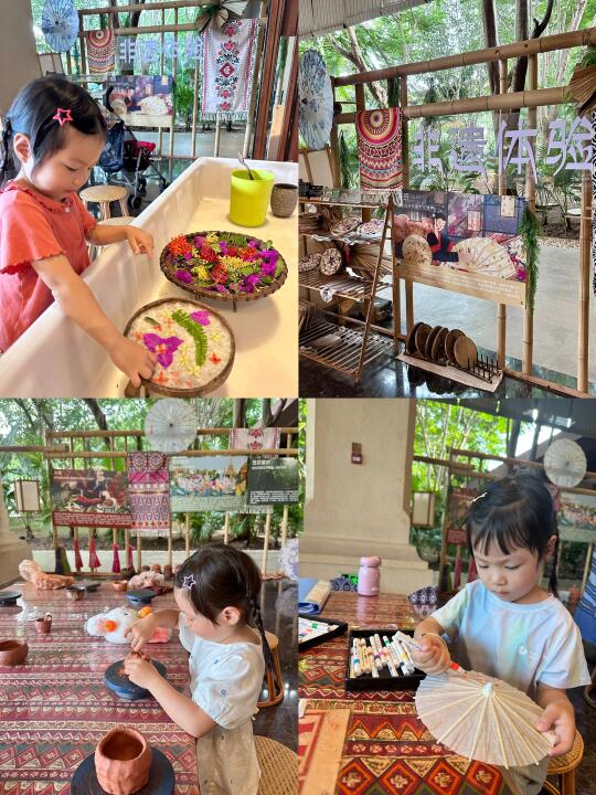 感受傣族文化,还有很多手工diy 可以体验:傣陶🪔捞鱼、磨豆浆、手工扇