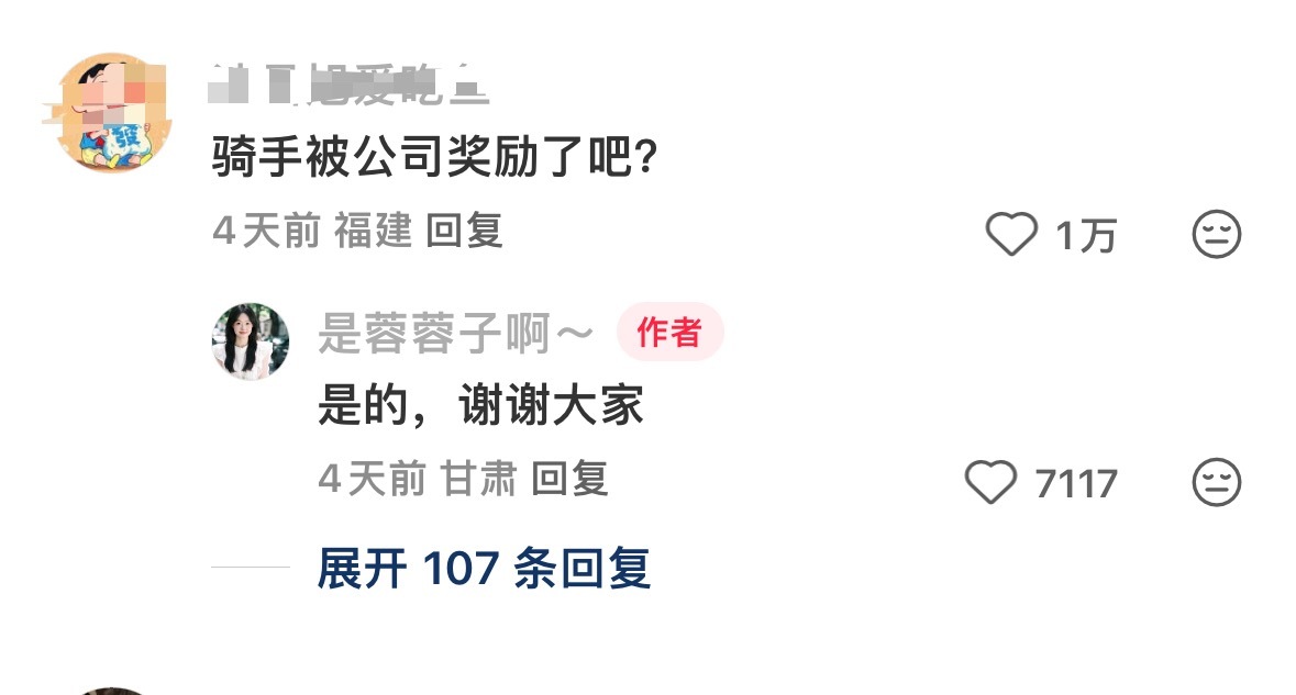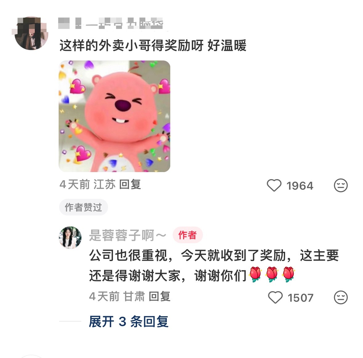 客户很感动,骑手被奖励了,骑手女朋友也很自豪,一切都很美好!