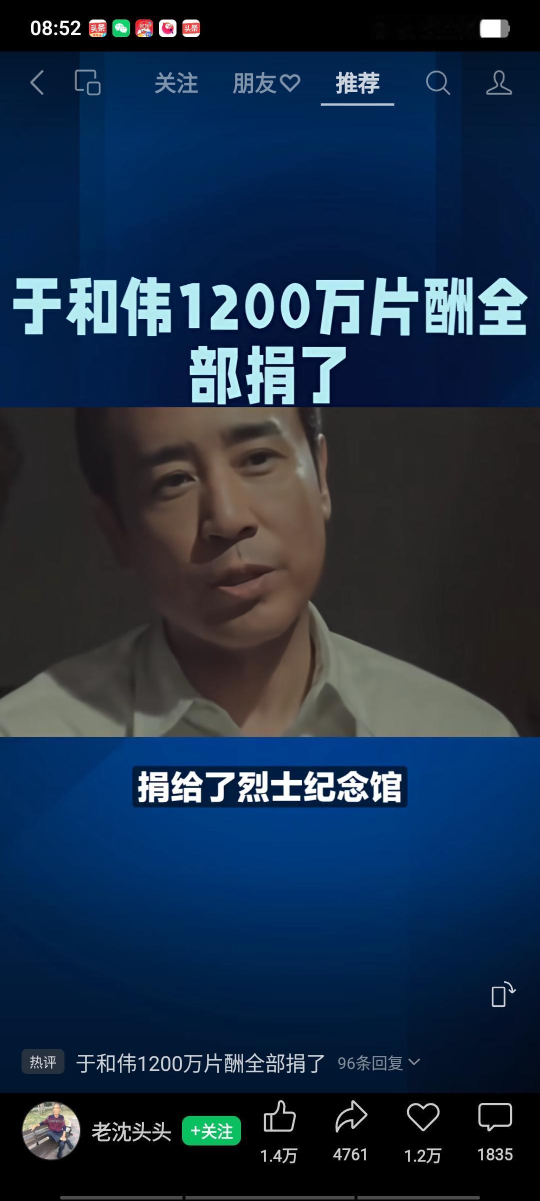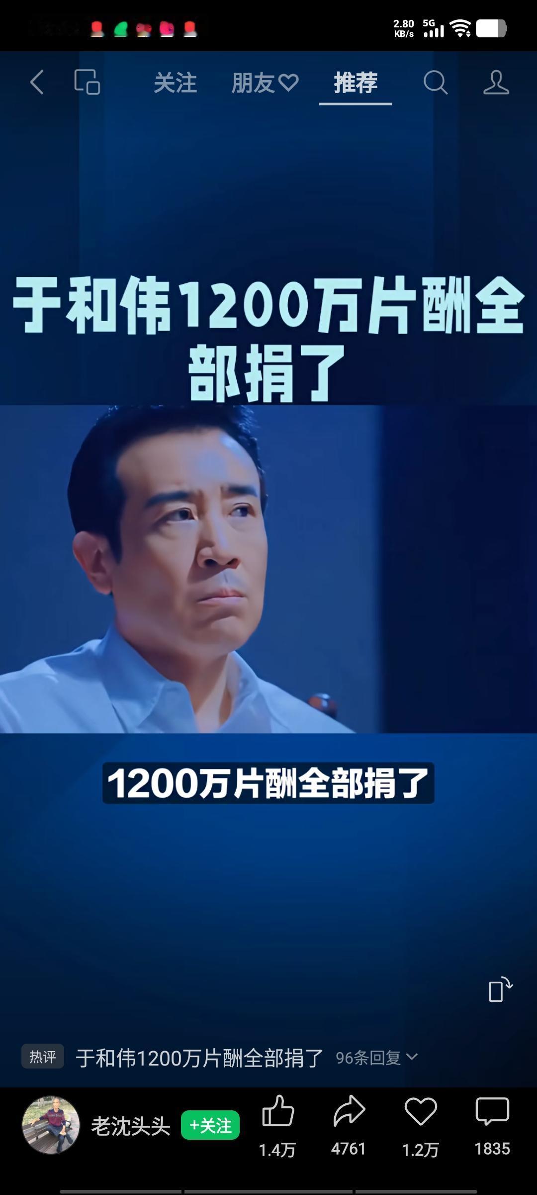 《沉默的荣耀》正在火热播出,于和伟在剧中饰演的吴石将军令人眼前一亮。他凭借精湛演技,生动诠释了地下工作者的艰辛与牺牲精神,给观众留下了深刻印象。 近日,于和伟将1200万元片酬悉数捐献给了烈士纪念馆,此举尽显大气风范。于和伟自幼历经苦难,他是家中幺子,上面有8个哥哥姐姐,生活极为艰难,他甚至吃过姐姐的奶。当年他考上上海戏剧学院却交不起学费,姐姐卖掉孩子心爱的钢琴助他圆梦。 于和伟的演艺之路并非一帆风顺,他跑了十年龙套,直至出演《三国演义》后才声名鹊起。这些年他事业有成,为8个哥哥姐姐都购置了新房,对妻子始终忠贞不渝,零绯闻,口碑极佳。 希望大家不要误解他的善举是哗众取宠,期待他未来能在银幕上创作出更多优秀作品。