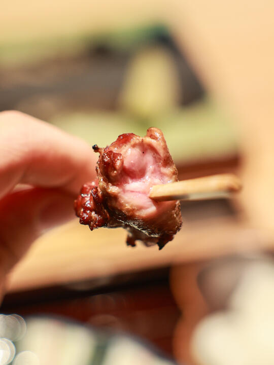 这次还吃到了鸽尾,鸽子的尾部脂肪较少,肌肉比例更高,所以鸽尾吃起来没有那种嘎吱冒油的感觉,而是略带弹性口感搭配淡淡禽类肉香,挺新奇的体验。