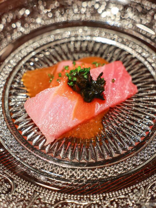 A5和牛搭配的牡丹虾,一口咬开,牛肉油脂丰满程度,一度让我以为里面还包了什么奶油😂还得是这奶香四溢的牛肉,量少但过瘾。