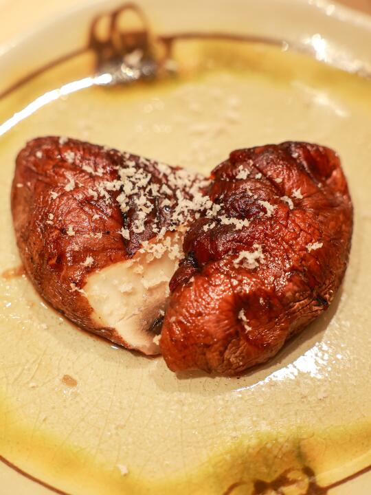 炭烤的和牛菲力,肉质相当嫩滑,几乎没有粗糙的纤维感,搭配一旁孢子芥的微辣感与淡淡苦味,进一步提升了牛肉的风味。