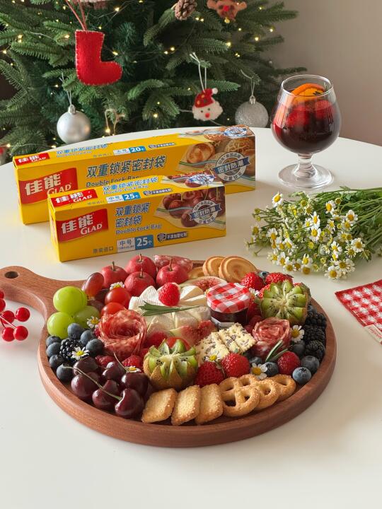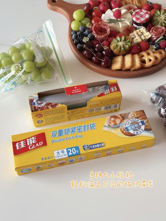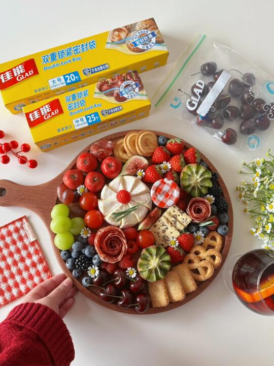 因为奶酪水果拼盘用到的食材很多🍇一般做之前采购的食材我会及时放入保鲜搭子-GLAD佳能双重锁紧密封袋中🛍️