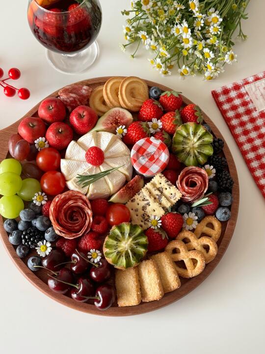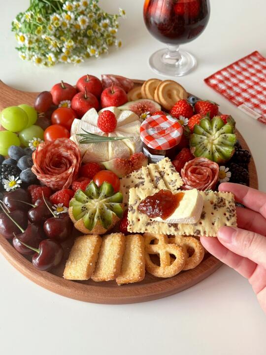 跨年在家做了这份氛围感满满的奶酪水果拼盘✨只需要组合上爱吃的零食、奶酪和水果🫐再搭配上不同的果酱和调味就可以搞定啦🍓再来一杯冬日的热红酒🍷新年聚餐美味轻松拿捏🍴