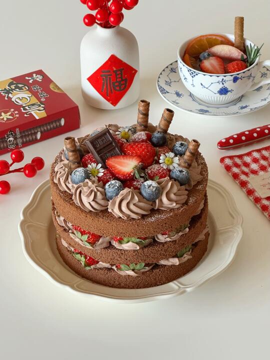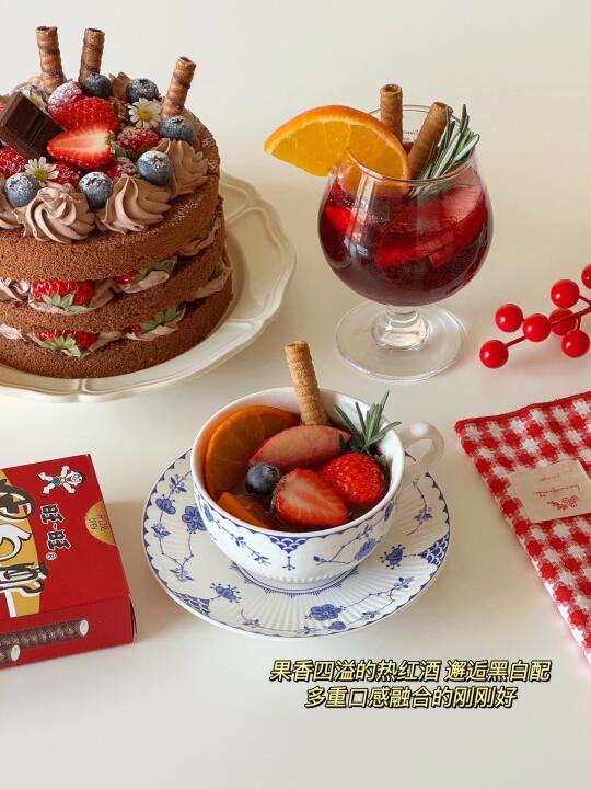 今天分享一款适合新年聚餐的裸蛋糕做法🎂可可味和冬天很适配呢!而且无需抹面!新手宝宝也很操作~再搭配上无香料版的热红酒🍷就是幸福的冬日新年美味~
