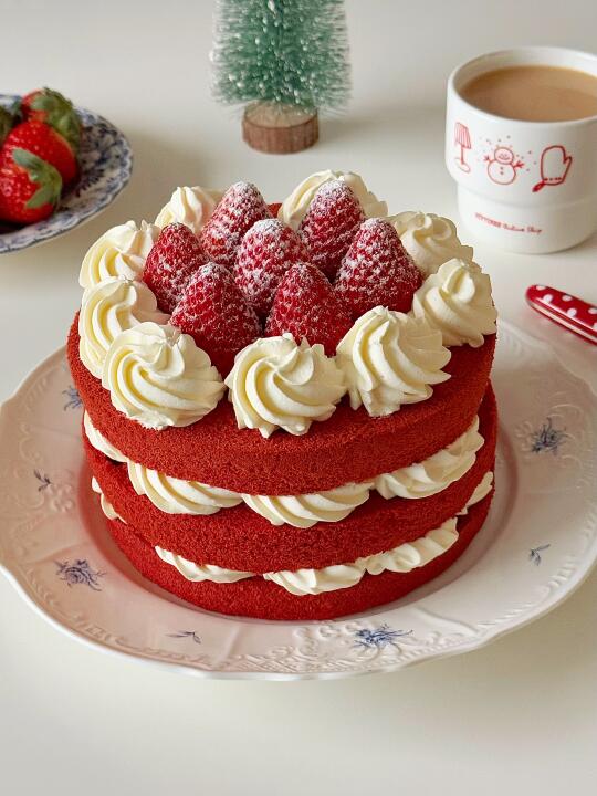 4️⃣红丝绒草莓裸蛋糕
