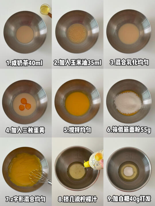 鸡蛋3枚、咸奶茶40ml、玉米油35ml